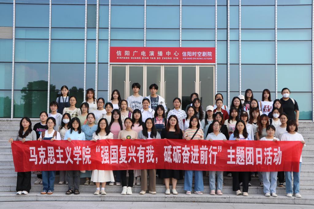 6月13日,太阳集团tyc5997组织师生前往信阳广电演播中心开展“强国复兴有我,砥砺奋进前行”主题团日活动。我院专职辅导员沈海蓄、思政课教师吴梦云以及2021级、2022级学生代表共同参加活动。