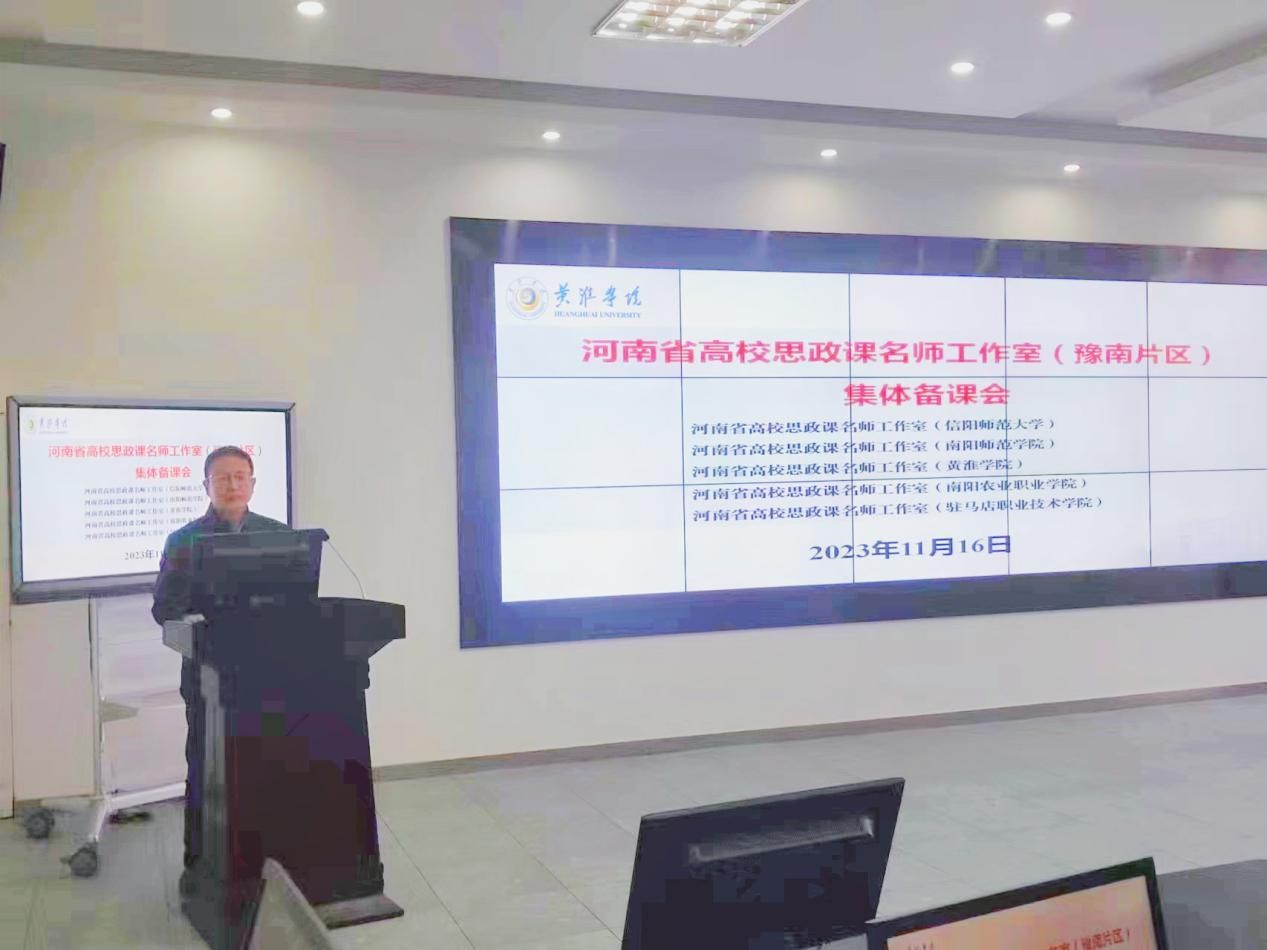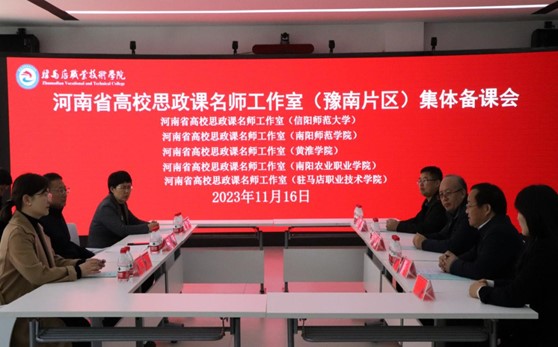 为贯彻落实习近平新时代中国特色社会主义思想和党的二十大精神,11月16日上午,河南省高校思政课名师工作室(太阳集团tyc5997)、河南省高校思政课名师工作室(南阳师范学院)、河南省高校思政课名师工作室(黄淮学院)、河南省高校思政课名师工作室(南阳农业职业学院)、河南省高校思政课名师工作室(驻马店职业技术学院)联合组织在黄淮学院、驻马店职业技术学院召开思政课集体备课会。太阳集团tyc5997院长唐国战带队参加了本次活动。