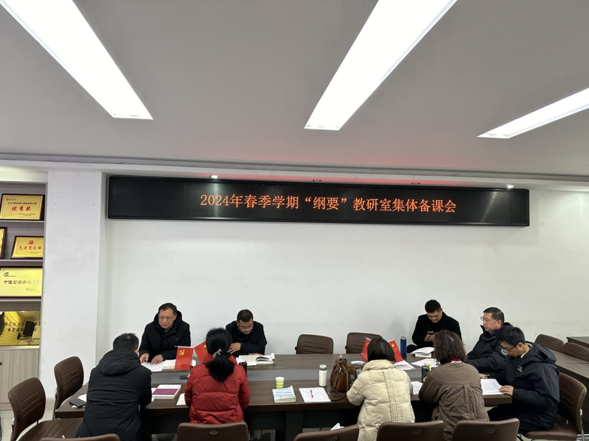 2月28日上午,《中国近现代史纲要》教研室在社科楼323会议室召开了本学期集体备课会。学院教学秘书郭明骐、教研室全体专兼职教师参加了会议。会议由教研室主任陈杰主持。