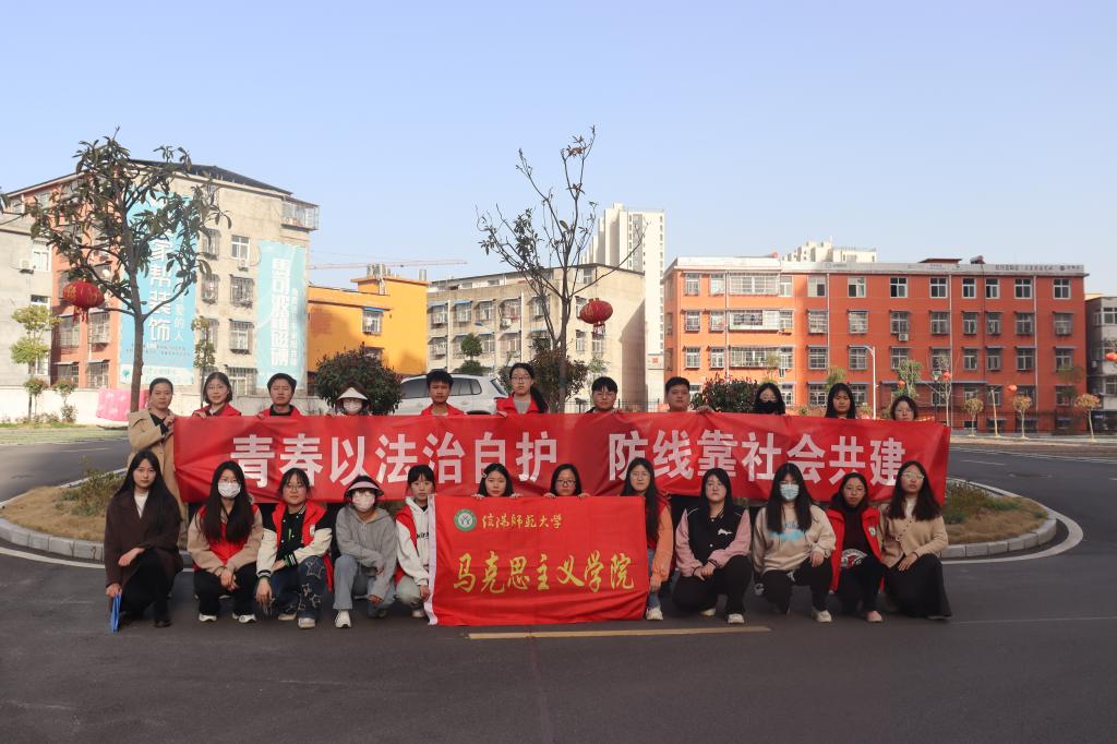 “法治宣传进社区, 志愿服务暖人心”。学院组织青年志愿者在社区开展法治宣传活动。首先,志愿者们走进社区与居民们拉家常、讲法理,在关心居民的生活状况同时向他们科普法律知识和环境保护的意义。随后,他们邀请社区居民和物业人员共同聆听法治宣讲,了解未成年人参与网络生活的潜在危险,引导未成年人提高法治意识和自护能力。