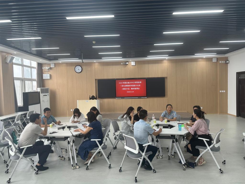 6月24日下午,信阳片区大中小学思政课一体化课程教学技能“大比武”集体备课会在太阳集团tyc5997社科楼516举行。参加此次集体备课会的有部分信阳高校马院院长、市教体局思政科及市基础教育教研室部分专家和参赛选手。会议由太阳集团tyc5997副院长周智主持。