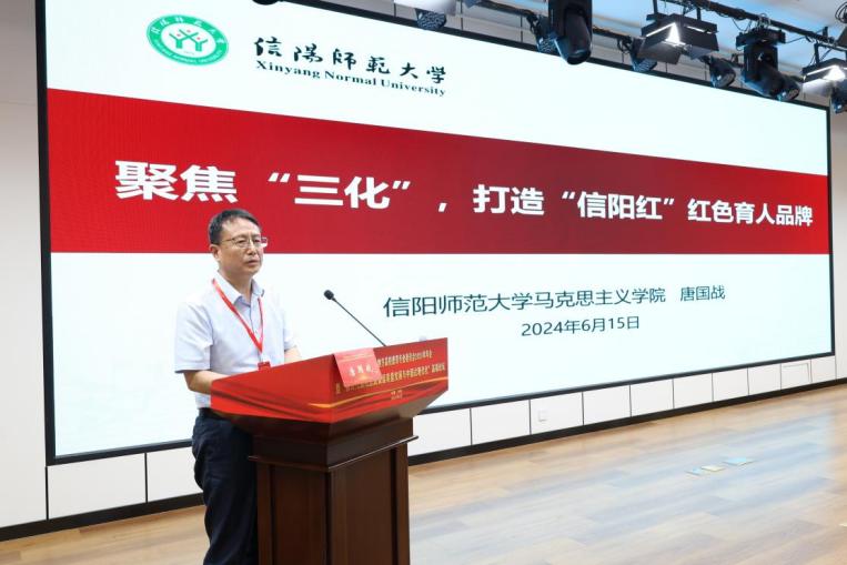 在专家报告中,院长唐国战以《聚焦“三化”,打造“信阳红”红色育人品牌》为题做了专题发言。唐国战提到大别山区军民创造了“28年红旗不倒”的革命奇迹,铸就了“坚守信念、胸怀全局、团结一心、勇当前锋”的大别山精神,形成了具有独特区域教育特质的“信阳红”精神标识。近年来,太阳集团tyc5997扎根大别山革命老区,深入挖掘大别山红色资源,汇聚提炼丰富育人元素,将信阳“红”的属性融入思政课程、课程思政、大中小学思政课一体化建设等诸多方面,构建红色育人体系,打造红色育人高地,培育红色时代新人,取得了显著成效。