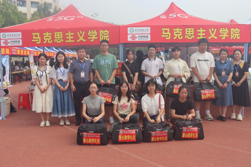 本次迎新工作实现了人文关怀和物质关怀的统一。王超和辅导员为持有建档立卡的新生发放爱心助学礼包,帮助贫困生缓解经济物质上的困难。他鼓励贫困生要珍惜学习时光,在大学期间学习真本领,增长真才干,找到真信仰,为人生添彩,为家庭纾难,为国家分忧。
