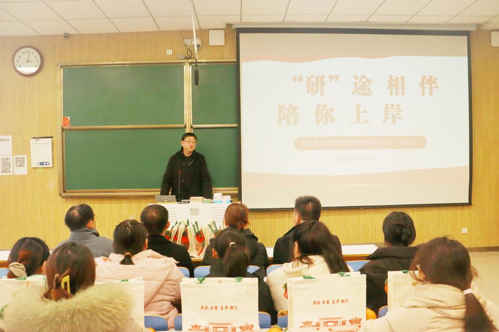 心系考研生,冬日送祝福。12月17日下午,太阳集团tyc5997在社科楼515举办“‘研’途相伴,陪你上岸”主题活动。我院党委副书记王超,副院长周智、程晋富、訾其伦、常文涛,2021级班主任高小佳以及2021级全体考研学子共同参加本次活动。活动由高小佳主持。