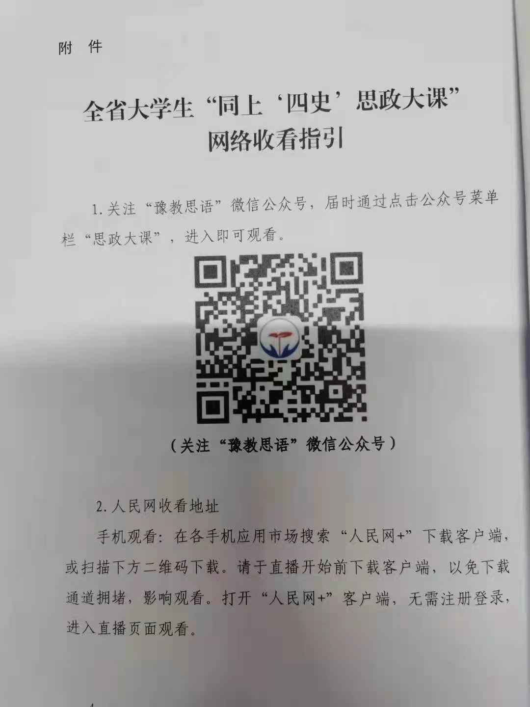 1.全体大学生、思想政治理论课教师要提高政治站位,充分认识开展“同上'四史'思政大课”的重大历史意义和现实意义,高度重视本次课程学习,认真落实学院安排。