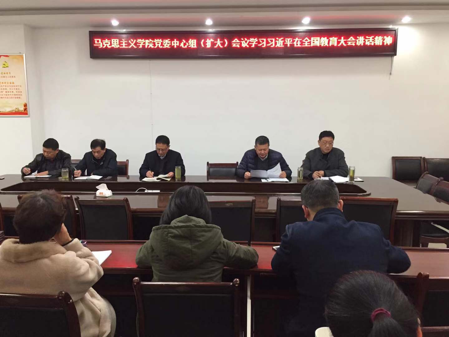 12月4日下午,太阳集团tyc5997在社会科学楼323会议室召开党委理论学习中心组学习(扩大)会议,传达学习全国教育大会精神尤其是习近平总书记在大会上的重要讲话精神,安排部署贯彻落实工作。全体教职工参加了本次会议。会议由学院党委书记唐国战主持。