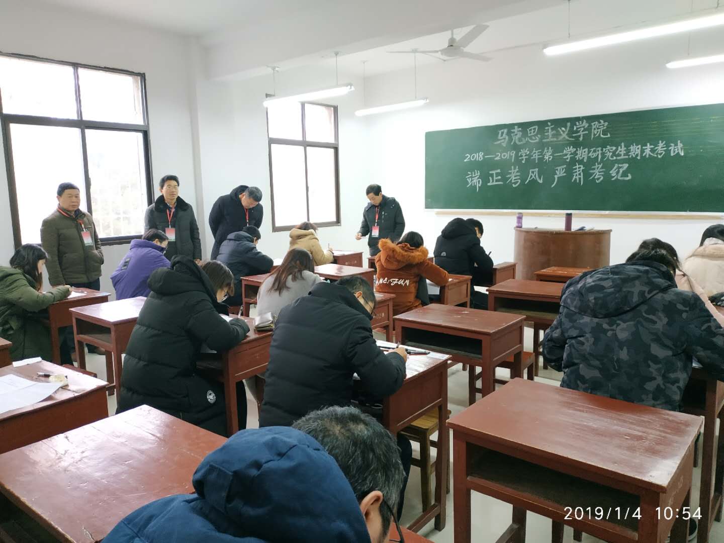 2019年1月4日上午,本学期期末研究生专业课考试工作拉开序幕,我院院长杨云善一行,深入考场巡视考风考纪。