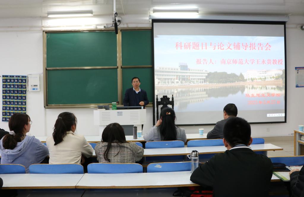 中场休息后,王永贵继续在社科楼514教室做了题为“科研题目与理论指导”专题辅导报告会,就我院师生的科研项目申报,提出了很多指导性意见。他指出,科研项目要具有时代性,要注意突出科研内容的新意。同时,他对我院师生提出的科研方面的问题进行了详细解答,对我院师生科研项目的开展具有指导性作用。