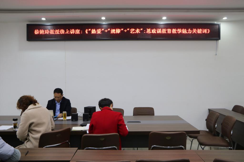 11月25日下午,应太阳集团tyc5997邀请,山东大学徐艳玲教授在腾讯会议网络平台开展题为“‘热爱’+‘规律’+‘艺术’:思政课教育教学魅力关键词”专题讲座。马克思主义院长唐国战、副院长李蕊、副院长訾其伦及部分师生共同聆听此次报告会,报告由唐国战主持。