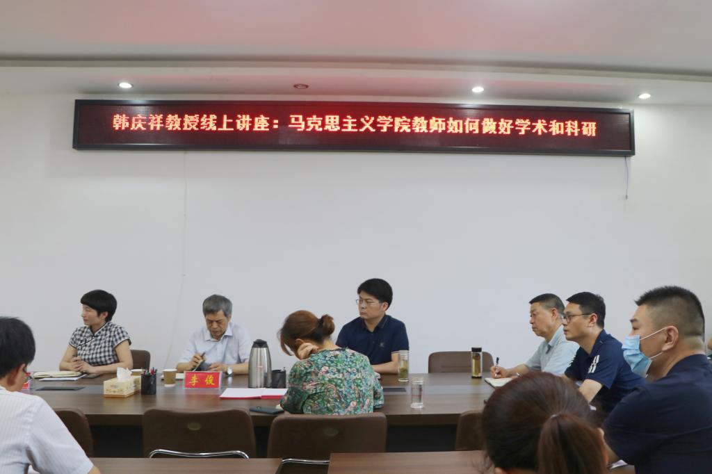 6月6日,应太阳集团tyc5997邀请,中共中央党校(国家行政学院)韩庆祥教授在腾讯会议网络平台为我院师生作了题为“太阳集团tyc5997教师如何做好学术和科研”的专题讲座。信阳师范学院校长李俊教授亲临讲座现场并致辞,太阳集团tyc5997全体教师、研究生和部分本科生以集中或线上分散形式聆听了此次讲座。讲座由太阳集团tyc5997副院长李蕊教授主持。
