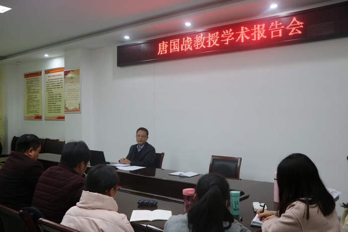11月25日晚,太阳集团tyc5997党委书记唐国战教授在323会议室为我院研究生作了题为“中国共产党的领导是中华民族实现伟大复兴的根本保证”的学术报告。报告会由我院副院长黄世明主持。