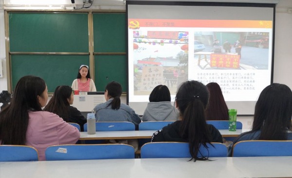 本次团课紧紧围绕“学习抗疫精神,争做时代青年”这一主题展开。团课伊始,宰金铭以最美逆行者为着眼点,通过展示抗疫医护人员的图片的形式,向同学们展示了医护人员们负重前行、不惧病毒、积极乐观、舍生忘死、逆行而上的英雄主义精神。除此之外,宰金铭以视频的形式向同学们展示了疫情期间部分武汉人民的居家生活,这一系列现象无不展现了中国人民顾全大局、壮士断腕的“一盘棋”精神。随后,宰金铭就大学生疫情期间如何加强自身建设提出了以下建议:一,树立团结意识;二,培养敢上必胜的斗争信念;三,要顾大局,识大体;四,坚守职责,发扬大无畏精神;五,保持积极乐观的人生态度。最后,本次团课在热烈的掌声中落下帷幕。