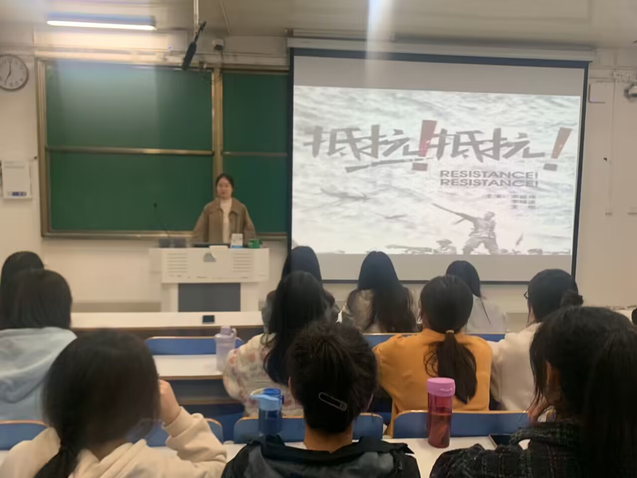 课上,同学们集中观看了在九一八事变中以黄显声为代表的东北军人誓死反抗日本侵略者的红色电影《抵抗!抵抗!》。观影结束后,朱思颖率先分享了自己的观影感受,她结合九一八事变的历史背景,强调新时代青年应当勇担历史重任,为实现伟大的中国梦而贡献自己的力量。其次,李佳茹对比面对日本侵略者坚持抵抗的血性军人以及放弃抵抗的软弱政客,她表示我们要铭记历史,牢记使命,做一个有血有肉的中国人。随后,王月表示我们现在的美好生活都离不开始终为祖国着想的革命先烈的努力,赞扬了战士们不畏牺牲,不怕困难,勇于斗争的奋斗精神。最后,王玲珑以不忘历史,振兴中华为主题,表明中国如今的崛起是中国人民奋发图强的结果,我们大家应当携手共建美丽富强的中国。
