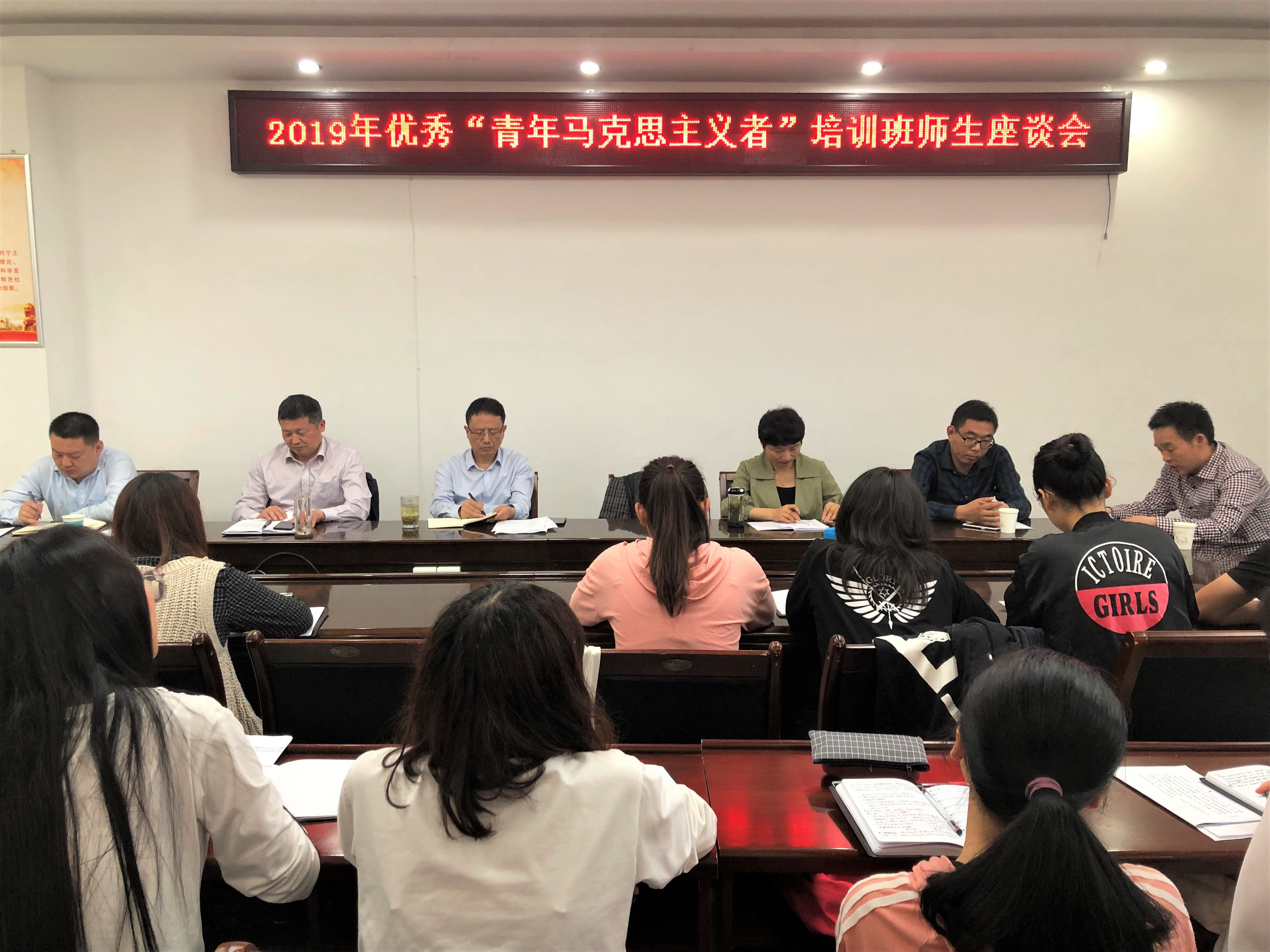 5月14日下午,我院2019年优秀“青年马克思主义者”培养工程在社科楼323会议室召开了师生座谈会。我院党委书记唐国战,党委副书记徐永新、何晓坚,老师代表李蕊、王帆宇、王建礼和全体辅导员、青马工程全体学员共同参加座谈会。会议由党委副书记何晓坚主持。