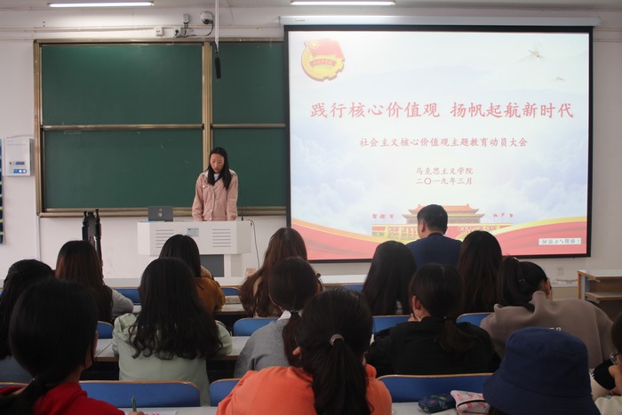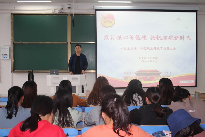 3月29日下午,太阳集团tyc5997于社科楼516教室召开了“践行核心价值观,扬帆起航新时代”的社会主义核心价值观主题教育动员大会。我院团委书记曹栋,主席团成员,及17、18级部分学生共同参加了动员大会。会议由分团委副书记肖妍杰主持。