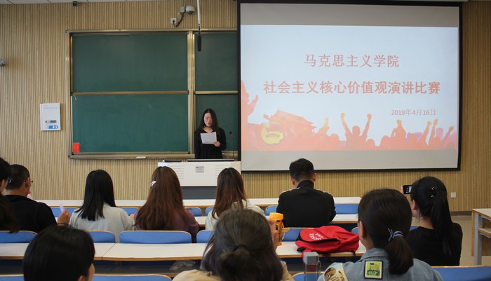 为了深入推进社会主义核心价值观教育,4月16日下午,我院在社科楼515教室成功举行社会主义核心价值观演讲比赛。我院分团委副书记肖妍杰、学生会副主席刘雅丹、陈思汝,2017级与2018级班委共同担任此次评委,我院部分学生观看了此次演讲比赛。比赛由袁紫薇主持。