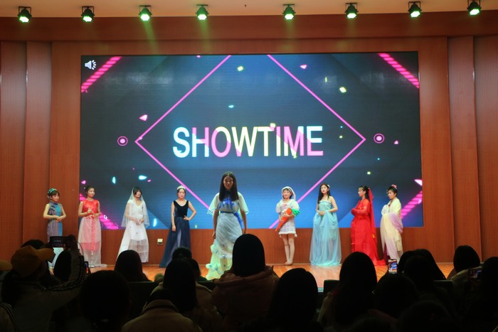 经过初赛、复赛选拔,十组选手入围决赛。本次比赛内容共分为三个部分:古风雅韵、时尚魅影、青春之歌。各参赛队依次登台展示她们独出心裁的服装。精辟的解说词让观众了解到作品的设计理念、创作特色、使用材料等方面的详细情况,自信大方、青春活力的走秀表演展现了她们独特新颖的服装设计,给同学们带来了一场极其难忘的视觉盛宴。比赛过程中穿插了有奖竞答、小品、歌曲、现场走秀环节,将现场氛围一次次推向高潮。其中,太阳集团tyc59972017级参赛小组用旧蚊帐、废报纸等制成的服装作品“皎皎新华”,既体现了环保理念又不失时尚元素,获得了评委们的青睐,最终摘得桂冠。