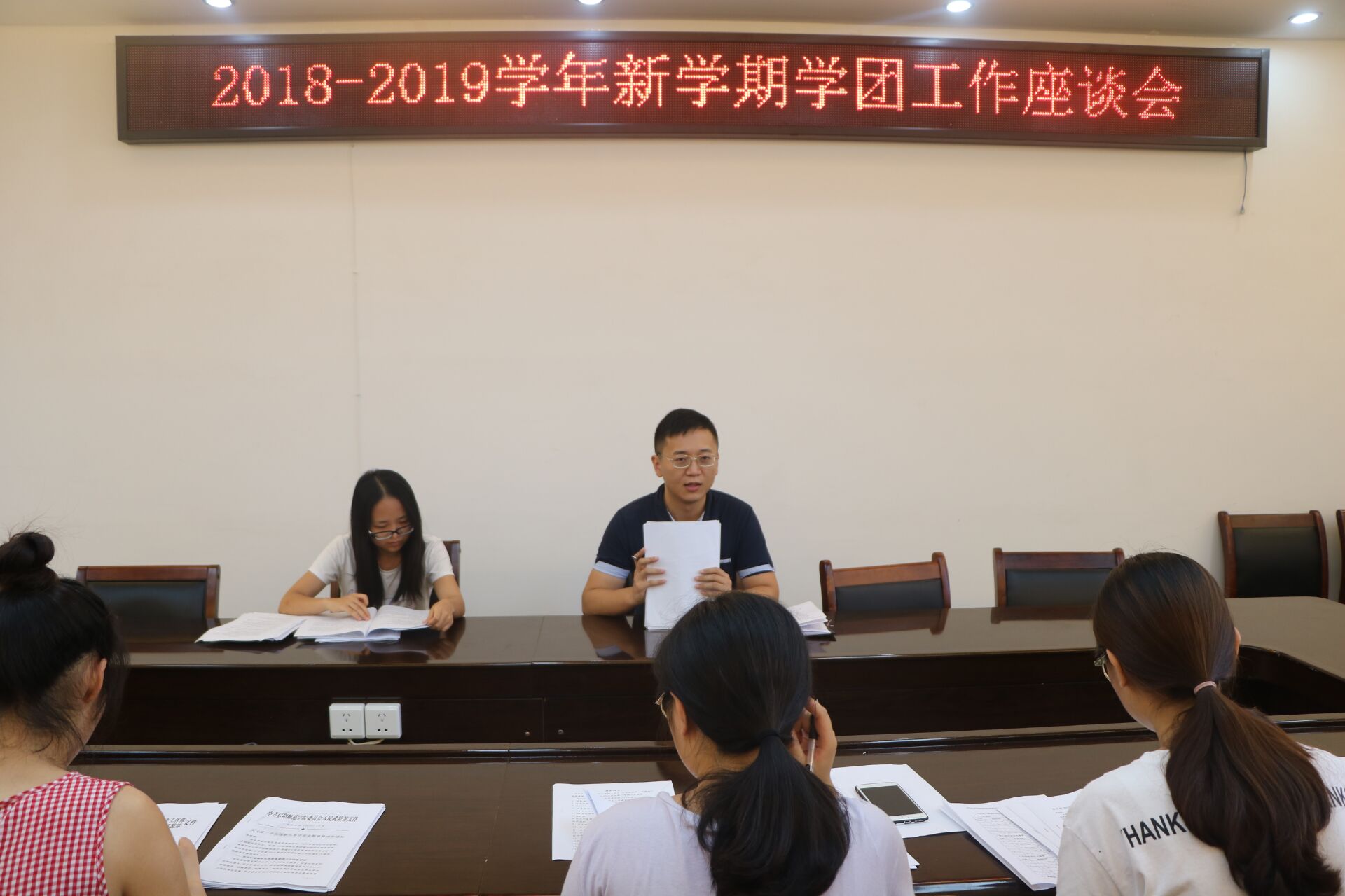 为对新学期学团工作进行全面部署,9月4日下午,我院在社科楼323会议室召开新学期学团工作座谈会,对新学期学生会常规性工作的顺利开展作出要求。我院团委书记曹栋、团委老师曹菁菁以及学生会主席团部分成员共同参加此次会议。