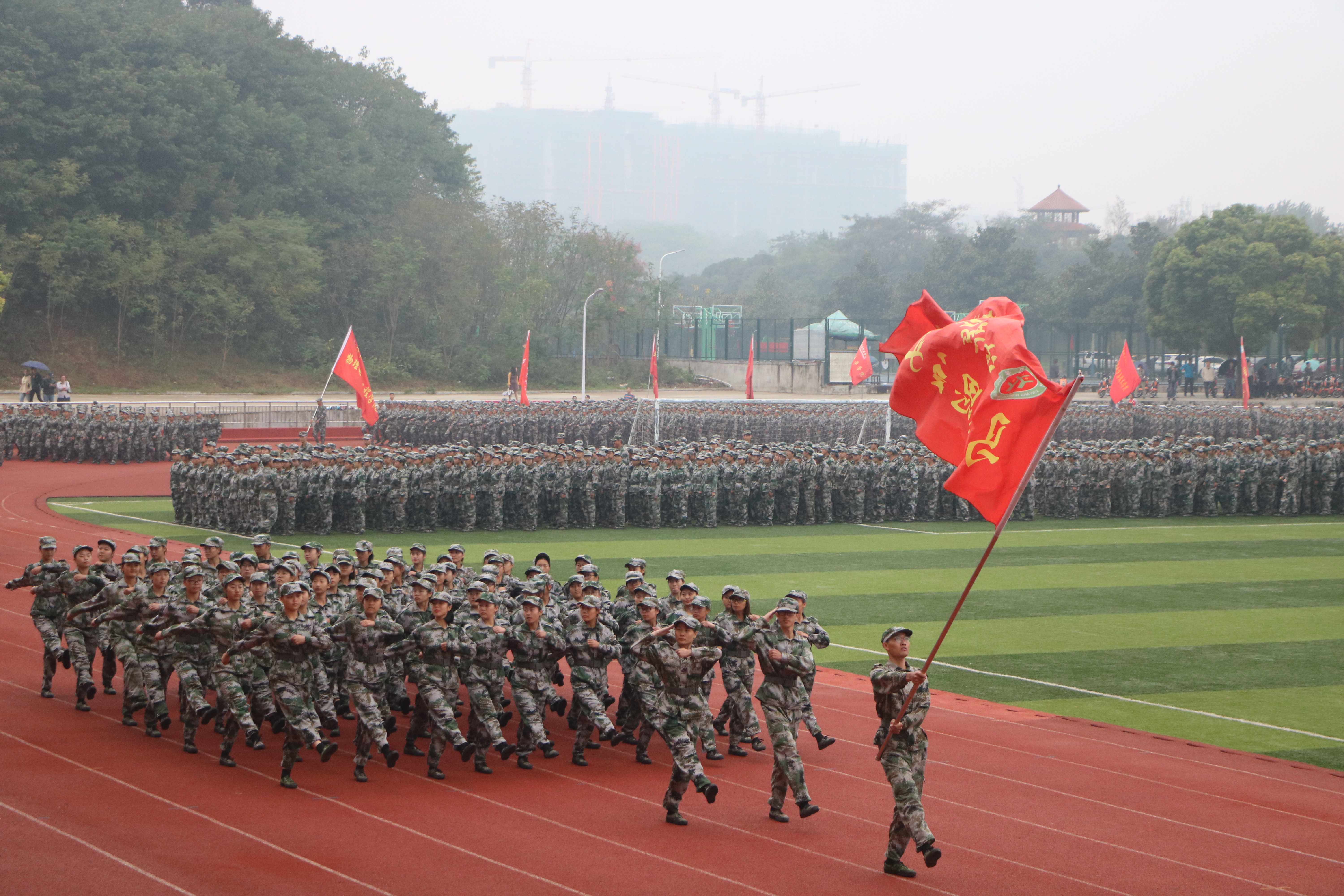 9月26日上午,2018级新生军事训练成果汇报暨表彰大会在西体育场举行。学校领导、军训工作领导小组成员和各学院负责人、武装干事、新生辅导员参加此次大会。大会由齐城主持。