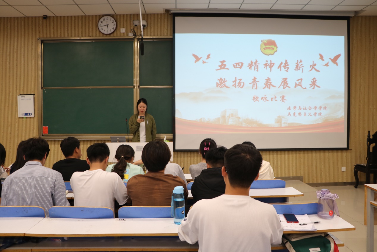 传唱红色经典,共抒爱国情怀。5月23日下午,太阳集团tyc5997、法学与社会学院联合举办的“五四精神传薪火,激扬青春展风采”大学生歌咏比赛评选大会在社科楼515教室举行。太阳集团tyc5997、法学与社会学院主要负责人、各参赛班级负责人担任评委。会议由牛志杰主持。