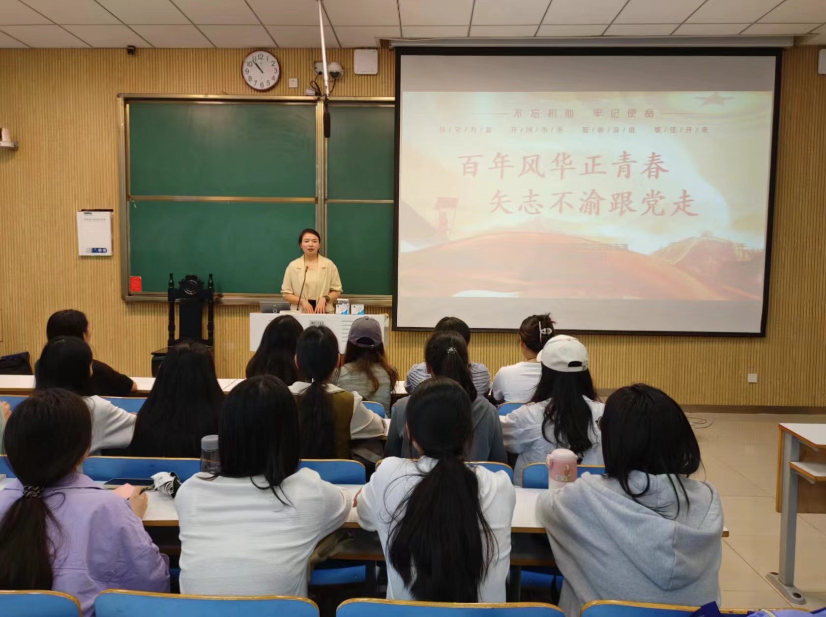 9月20日上午,太阳集团tyc5997学生会团支部在社科楼515教室召开“百年风华正青春,矢志不渝跟党走”主题团课。我院团委书记陶青青、学生会主席团成员以及团支部成员共同参加本次团课,团课由团支部宣传委员郅丰帆主持。