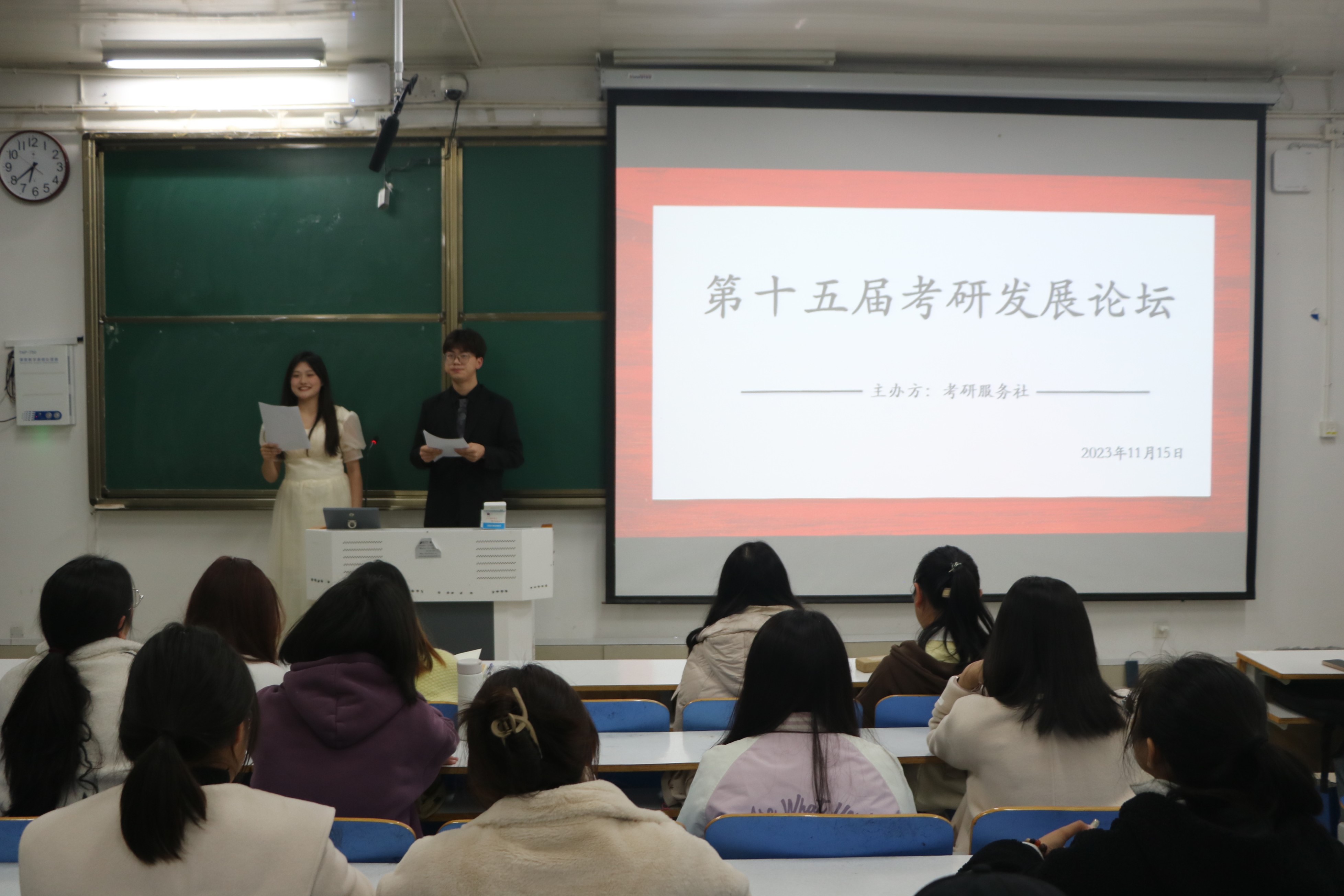 道阻且长,行则将至。11月15日晚,由太阳集团tyc5997考研服务社组织的第十五届考研发展论坛活动在社科楼514教室顺利举行。文都考研辅导老师熊瑛、社团发展与服务中心代表、考研服务社兄弟社团代表出席活动。此次活动由潘姿羽、季琳昊主持。