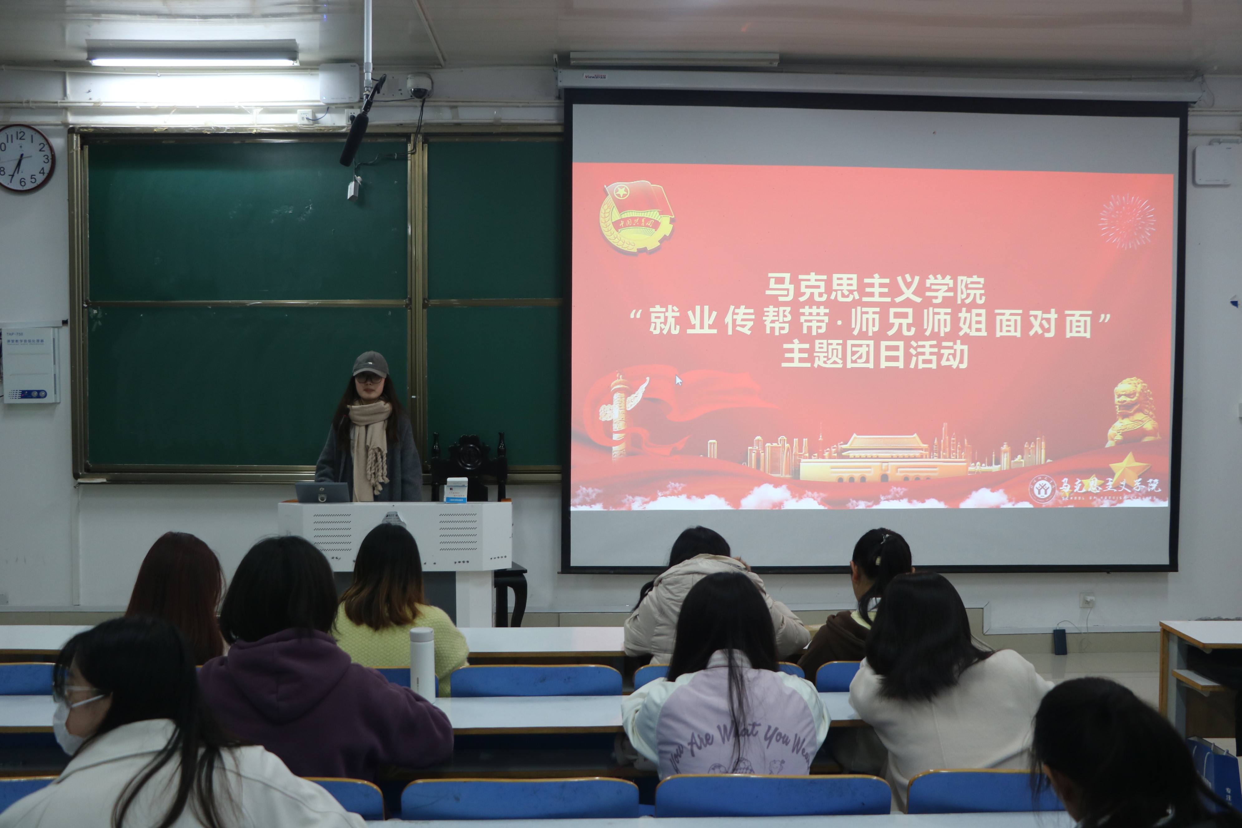 为强化就业育人实效,促进我院毕业生高质量就业,11月17日下午,太阳集团tyc5997团委联合考研服务社在社科楼515教室举办“就业传帮带·师兄师姐面对面”主题团日活动。本次活动由团支部副书记杨可主持,我院学子共同参加。