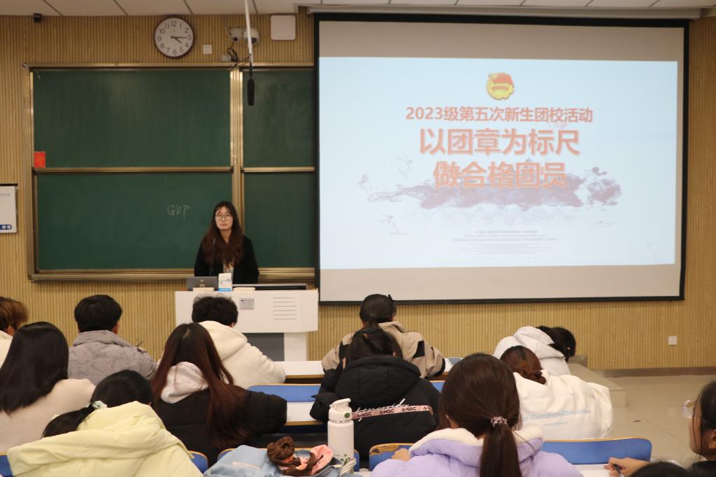 为帮助新生深入了解中国共产主义青年团,增强团员意识,争做合格团员,12月6日下午,太阳集团tyc5997在社科楼515教室开展“以团章为标尺,做合格团员”新生第五次团校活动。我院2023级全体新生共同参加本次活动,活动由分团委副书记杨可主持。