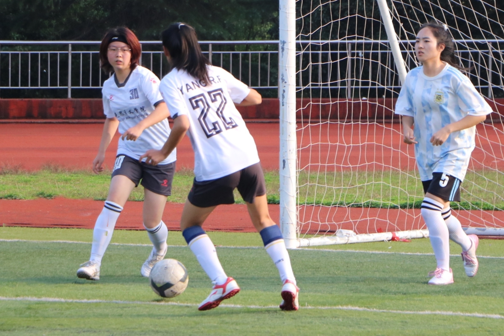 下午15点,比赛鸣哨开始。上半场比赛时,双方迅速进入竞争状态,我院球员配合默契,采取攻守兼备之策主动向对手发起攻势,大胆突围。球队双方竞争激烈,互不相让,但由于防守不当,上半场比赛以我院落后一分告终。中场休息时,我院教练就上半场为球员们归纳总结经验,提前部署后续战术。下半场比赛时,两队角逐更加激荡,对方率先换人调整后组织多次高压进攻企图打破僵局,我院球员面对球场瞬息万变的形势毫不怯懦,沉稳应战,不放过一丝一毫的进球时机,其中22号球员杨如凤在混战中找到机会踢球入门,斩下宝贵一分,全场掌声雷动。比赛最终1:1打成平手,进入6分钟加时赛阶段。加时比赛时,我院球员毫不懈怠,顽强防守,双方在胶着状态之下均未进球,进入点球阶段。点球时,双方球员交替踢球防守,我院球员沉着应对,接连三次进球成功,最终比赛以4:2的比分战胜对手。在本次赛事中,我院女子足球队稳扎稳打、敢抢敢拼,一路过关斩将,勇夺桂冠。