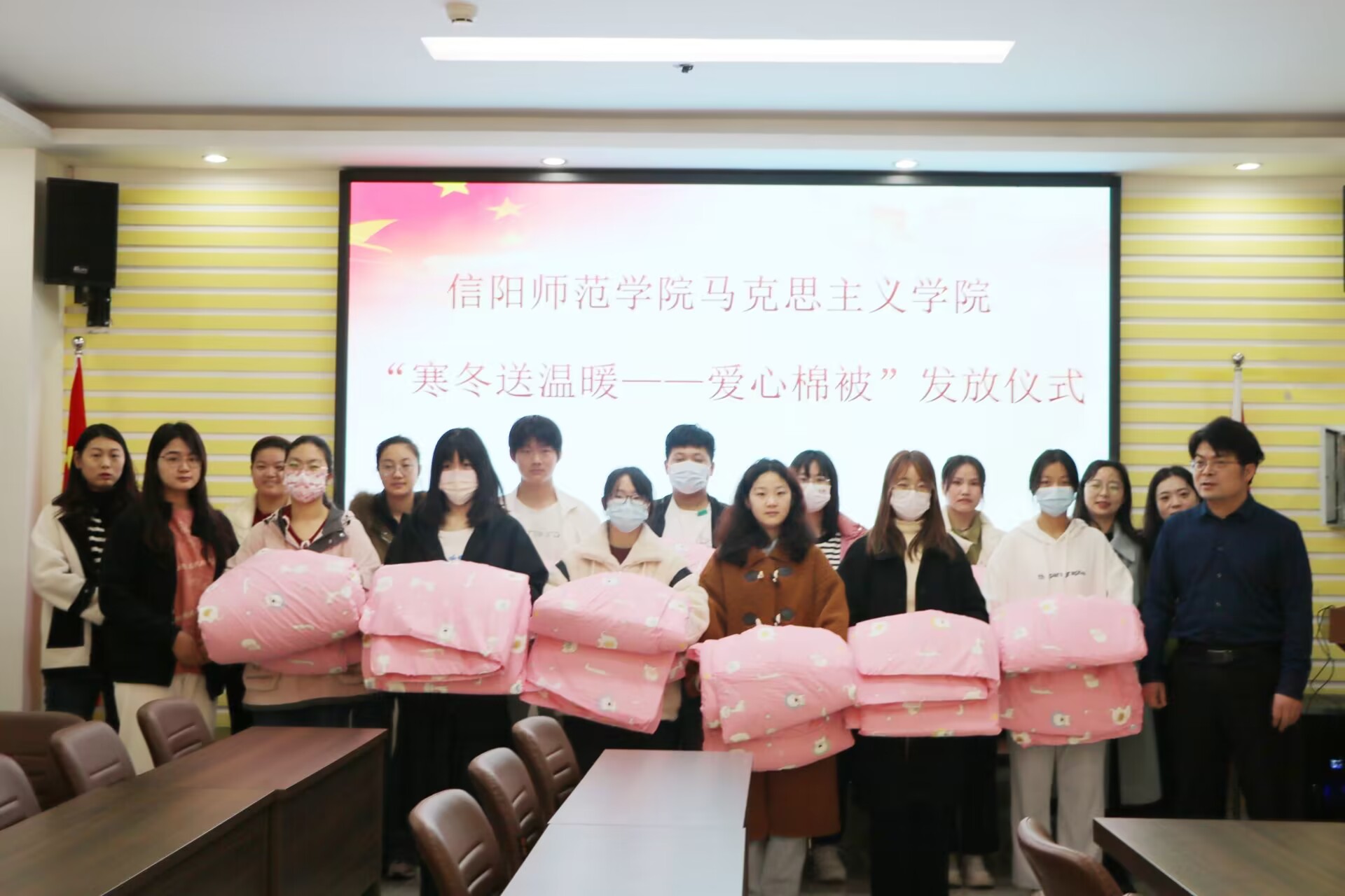 为切实做好家庭经济困难学生精准帮扶和资助育人工作,11月25日上午,太阳集团tyc5997在社科楼323会议室举行爱心棉被发放仪式。我院党委书记朱四倍、团委老师高小佳、班主任王明园、杨春艳、 吴梦云、周钰婷及受资助学生共同参加此次仪式。仪式由朱四倍主持。