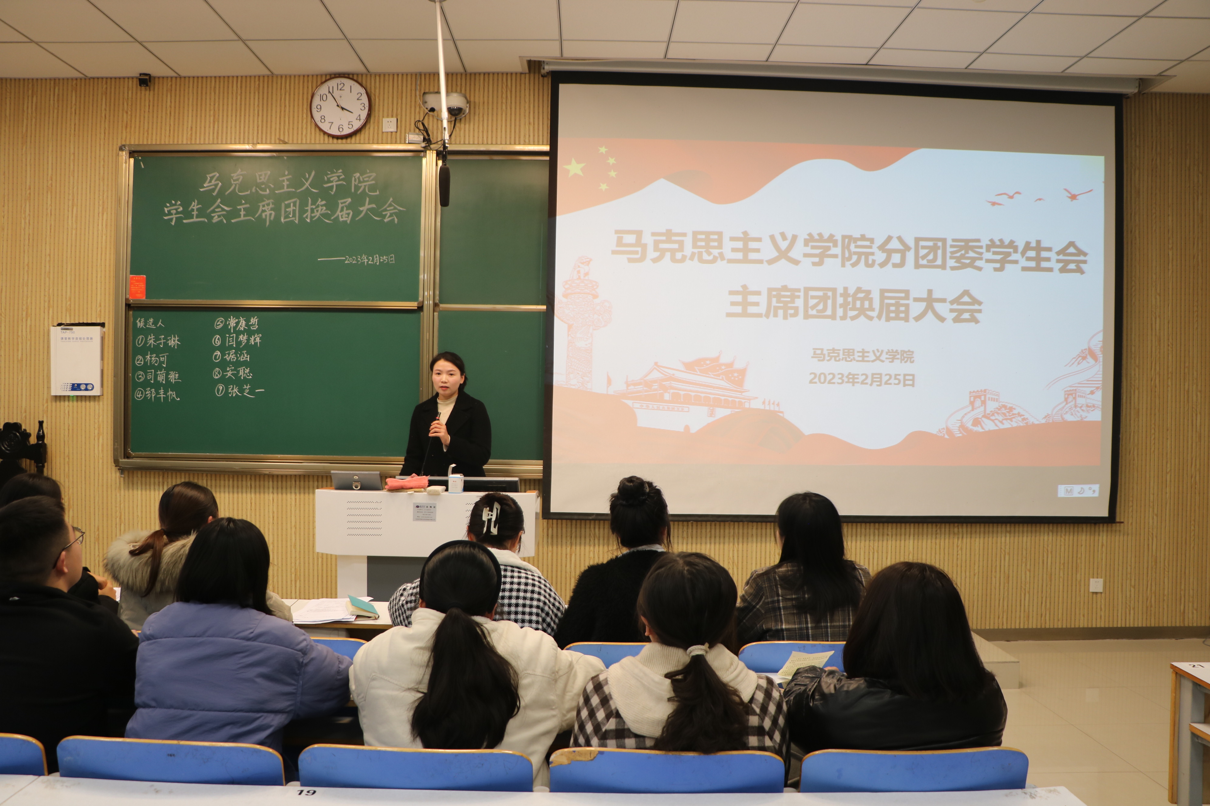 2月25日下午,太阳集团tyc5997在社科楼515教室召开2023年分团委学生会主席团换届竞选大会。我院团委书记陶青青、现任主席团成员、学生会各部门、社团及各班负责人共同参与本次竞选。竞选由执行主席李明营主持。