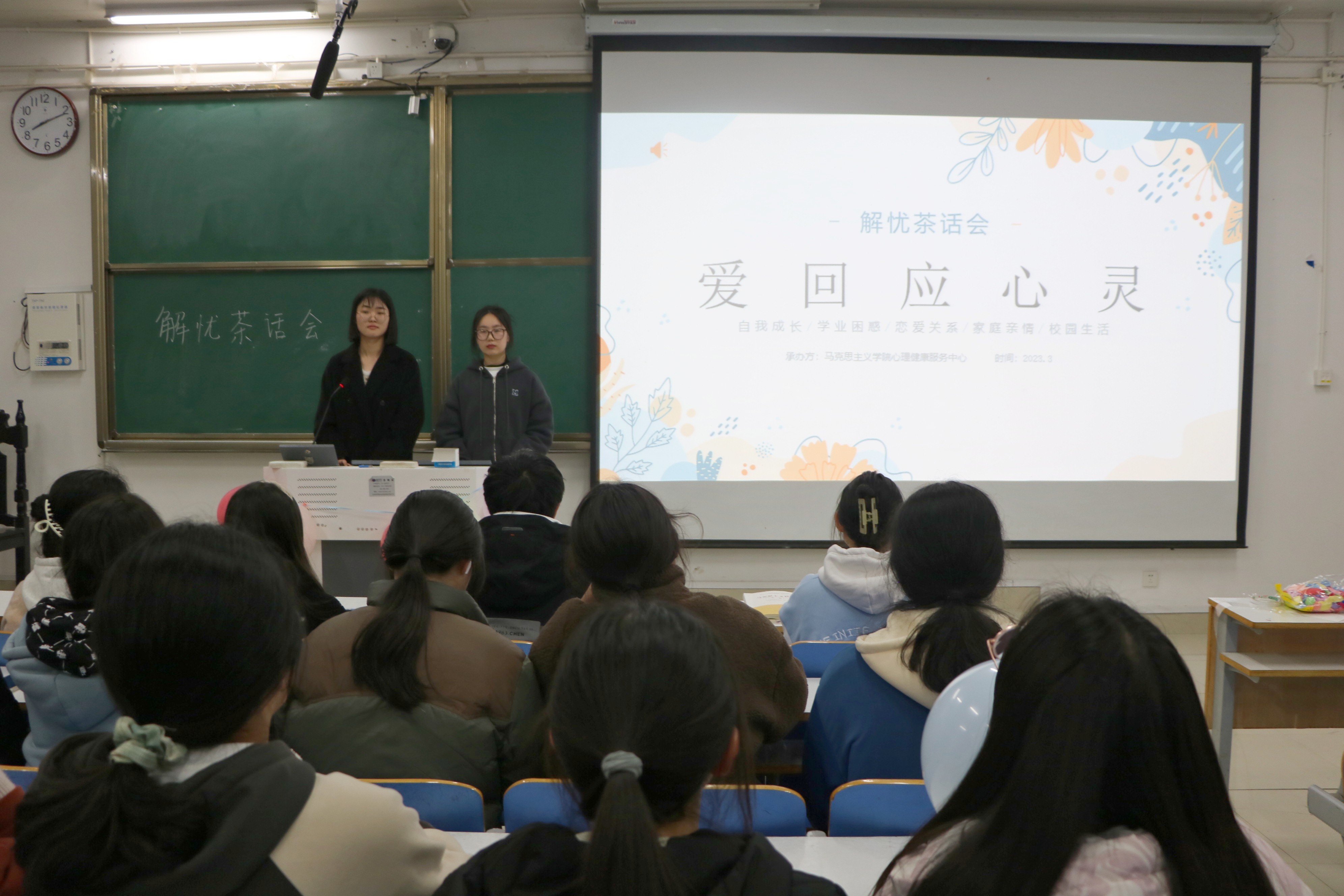 为了营造良好的心理健康教育氛围,增强同学们心理素质,3月18日晚上,太阳集团tyc5997分团委学生会心理健康服务中心在社科楼514教室开展“爱回应心灵”解忧茶话会活动。茶话会由王懿、刘艺钒主持。