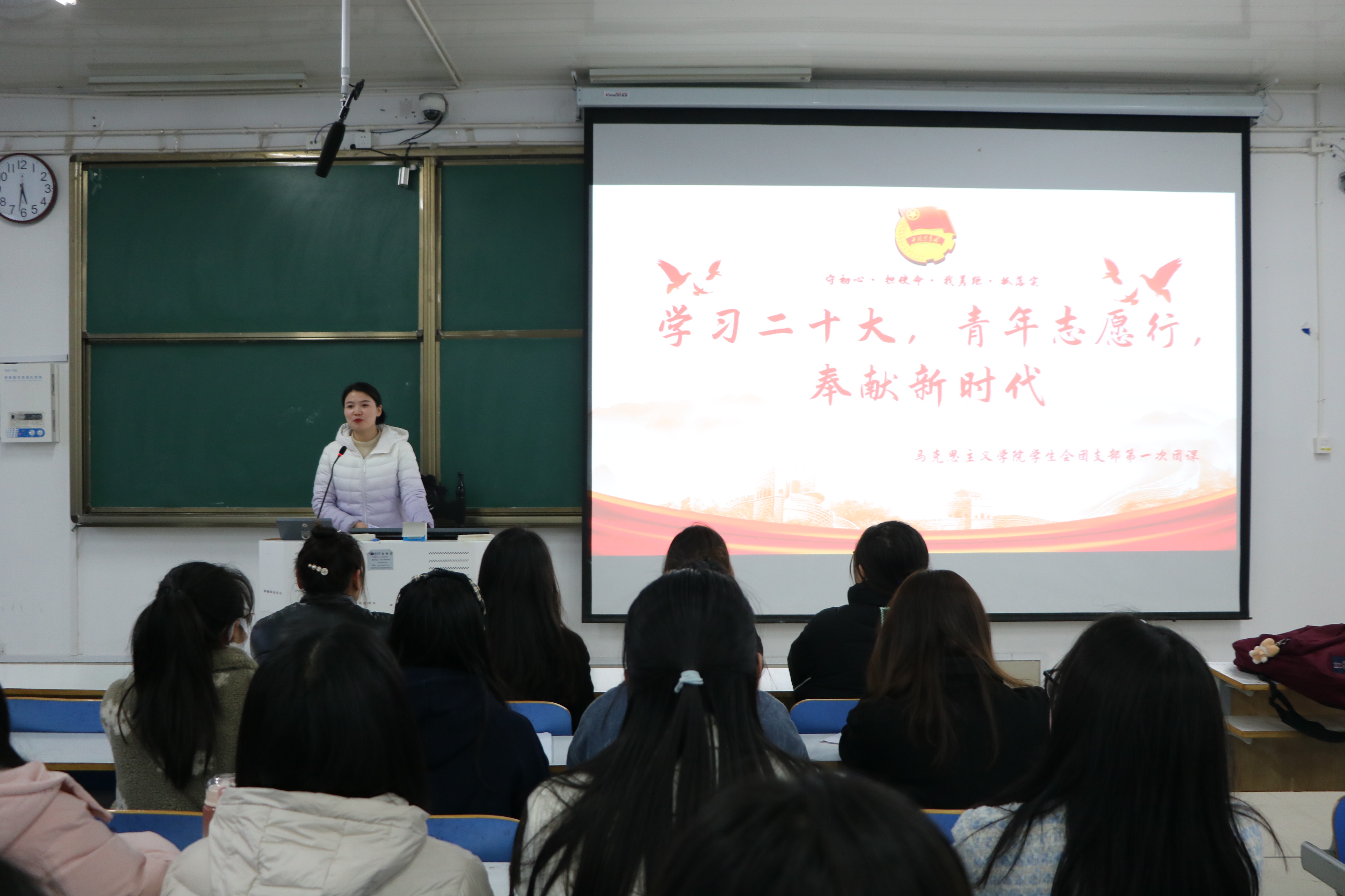 为深入学习贯彻党的二十大精神,鼓励青年积极参与志愿活动,3月22日下午,太阳集团tyc5997在社科楼514教室开展以“学习二十大,青年志愿行,奉献新时代”为主题的学生会团支部第一次团课,团委书记陶青青和学生会团支部全体成员共同参加本次团课。团课由陶青青讲授。