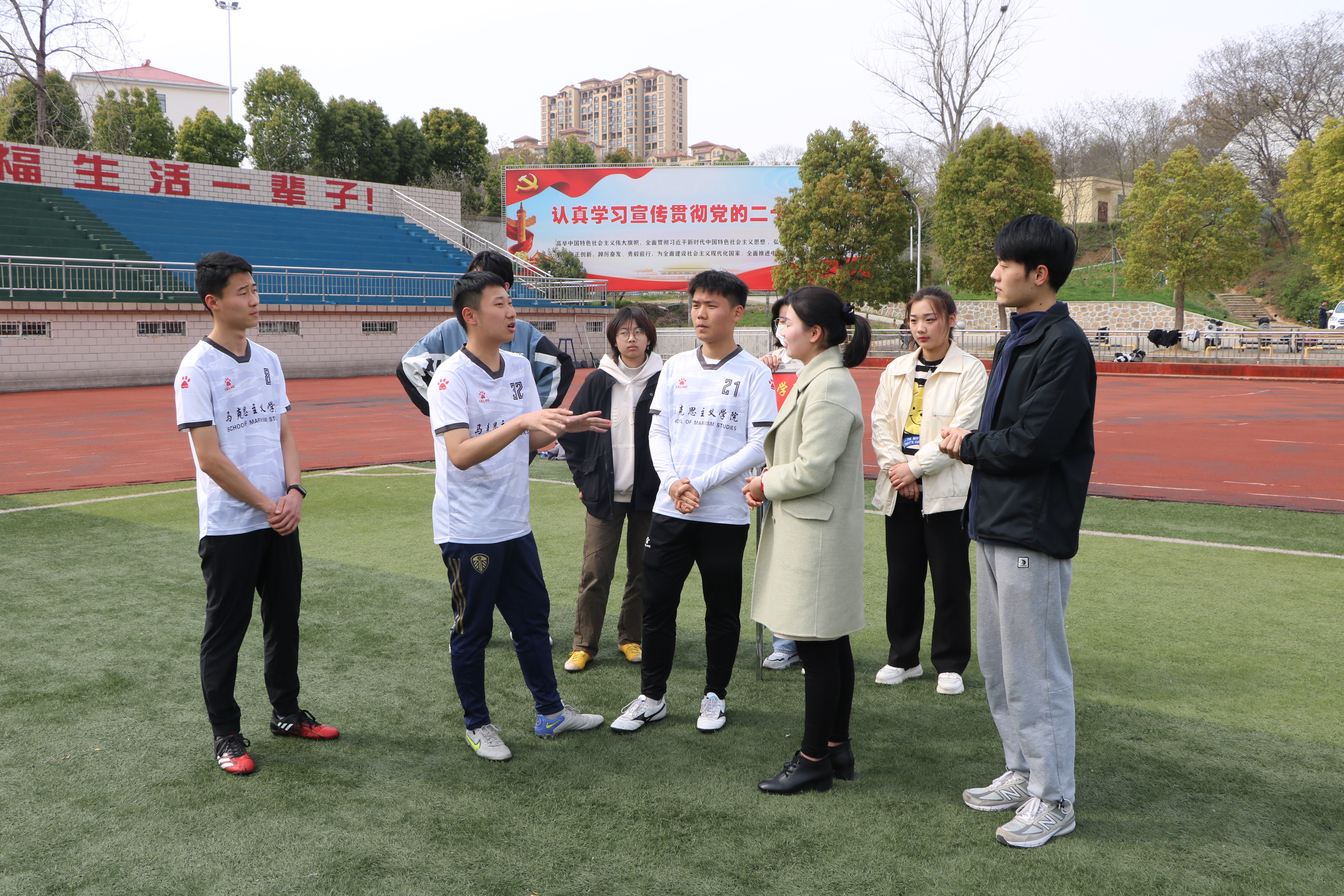 青春飞扬,乘风远航。3月28日下午,太阳集团tyc5997在我校西操场召开足球队动员大会。我院团委书记陶青青、专职辅导员沈海蓄、学生会主席团成员以及全体足球运动员共同参与此次大会。