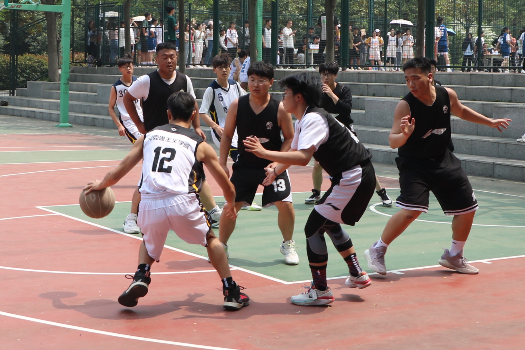 随着裁判一声哨响,比赛拉开帷幕。比赛前半场,我院男子篮球队队员精神抖擞,在赛场上全力拼搏。球员们防守到位、配合默契,精准的传球、快速的抢断、漂亮的外线远投,赢得了场内外的阵阵喝彩,充分发扬了“更高、更快、更强、更团结”的体育精神。比赛后半场,球员们依旧沉稳应对,一边进行严密防守,一边根据比赛情况及时调整策略,其中,11号球员阿卜来则·麦麦提反应机敏,关键时刻成功拦下一球,拉开双方比分。我院球员以昂扬的斗志、精湛的球技、完美的配合,牢牢掌握了比赛节奏,赛出了水平,赛出了风格,赛出了友谊,展现了新时代大学生团结、和谐、勇于拼搏的体育精神。最后,经过双方激烈的角逐,我院男子篮球队以44:21的比分战胜外国语学院,获得了本次比赛的胜利。
