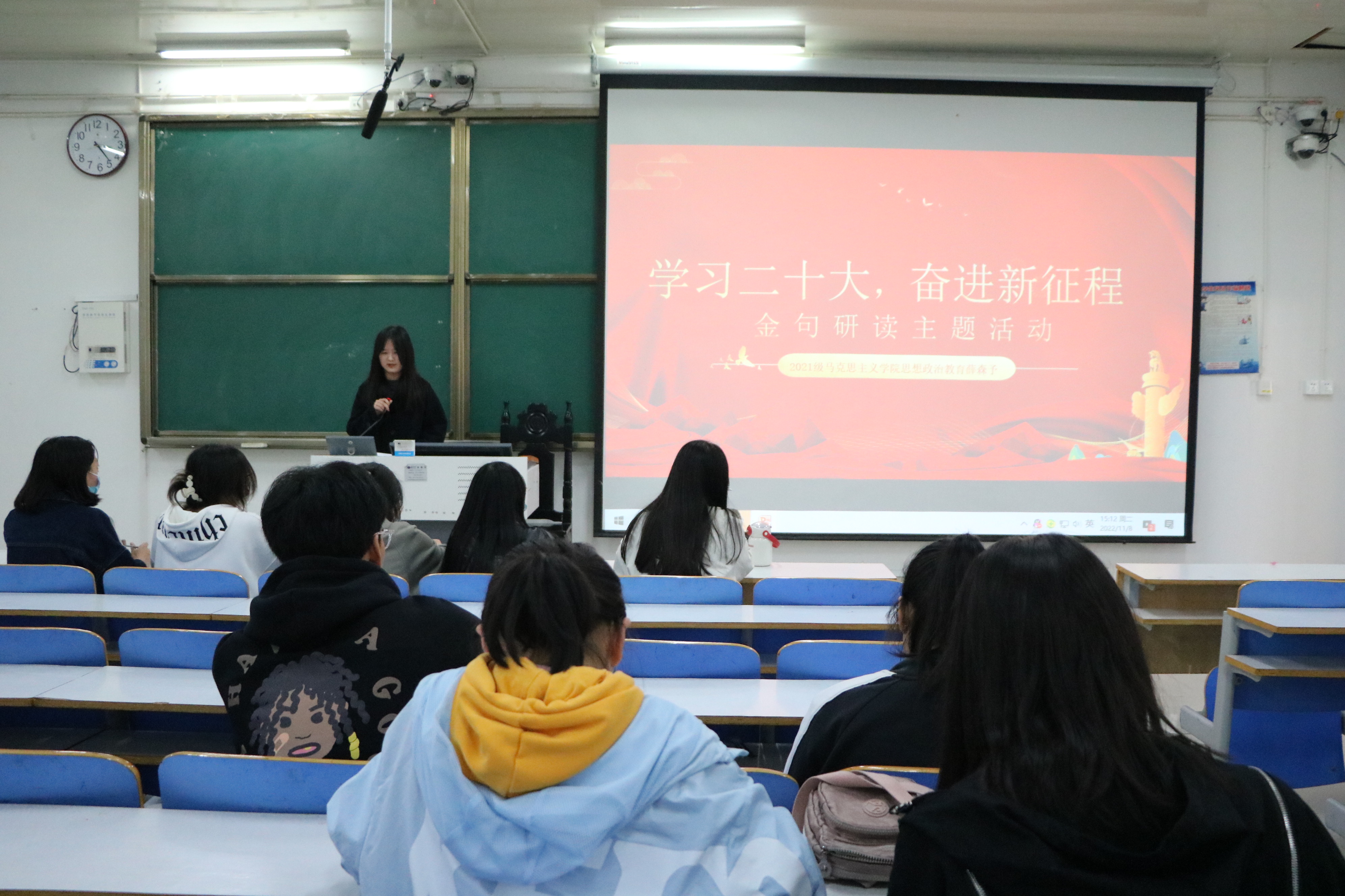 本次活动通过金句研读的方式,敦促我校学子深入学习党的二十大精神,唱响爱国、团结、矢志不渝跟党走的青春主旋律,引导同学们坚定正确政治方向,加强政治理论学习,将爱国之志转化为实际行动,让青春在全面建设社会主义现代化国家的火热实践中绽放绚丽之花。(太阳集团tyc5997 鲍梦瑶 张明月/供稿 陶青青/审核)