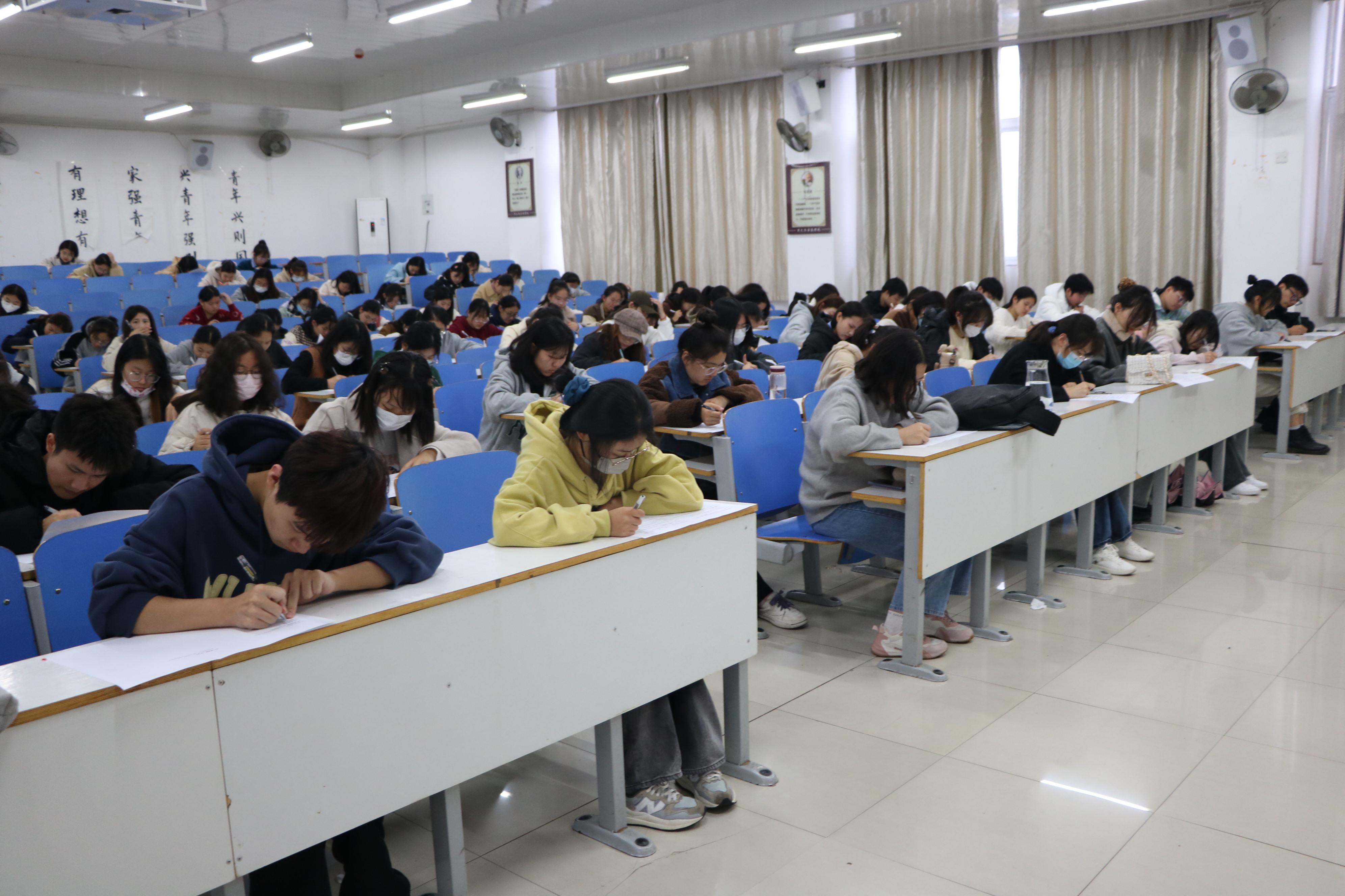 此次考试采用闭卷形式,隔位就坐,考试内容以《思想政治教育材料选编2022年学生工作规章制度专栏》为纲要,考试试题涉及宿舍管理、综合测评、违规处分、奖学金申请等多方面内容。试卷包括选择、填空、判断、简述和论述五大题型,有助于全方位、多角度考查新生对校规校纪的了解和掌握。考试开始前,监考员维持考场秩序并宣读考试注意事项,重点强调要严格遵守考试纪律,诚信答卷。考试过程中,监考员巡视考场,严格监考;同学们态度端正,遵守纪律,认真答题。整场考试纪律严明,秩序井然。考试结束后,监考员收取试卷,考生在检查基本信息无误后依次有序离开考场。