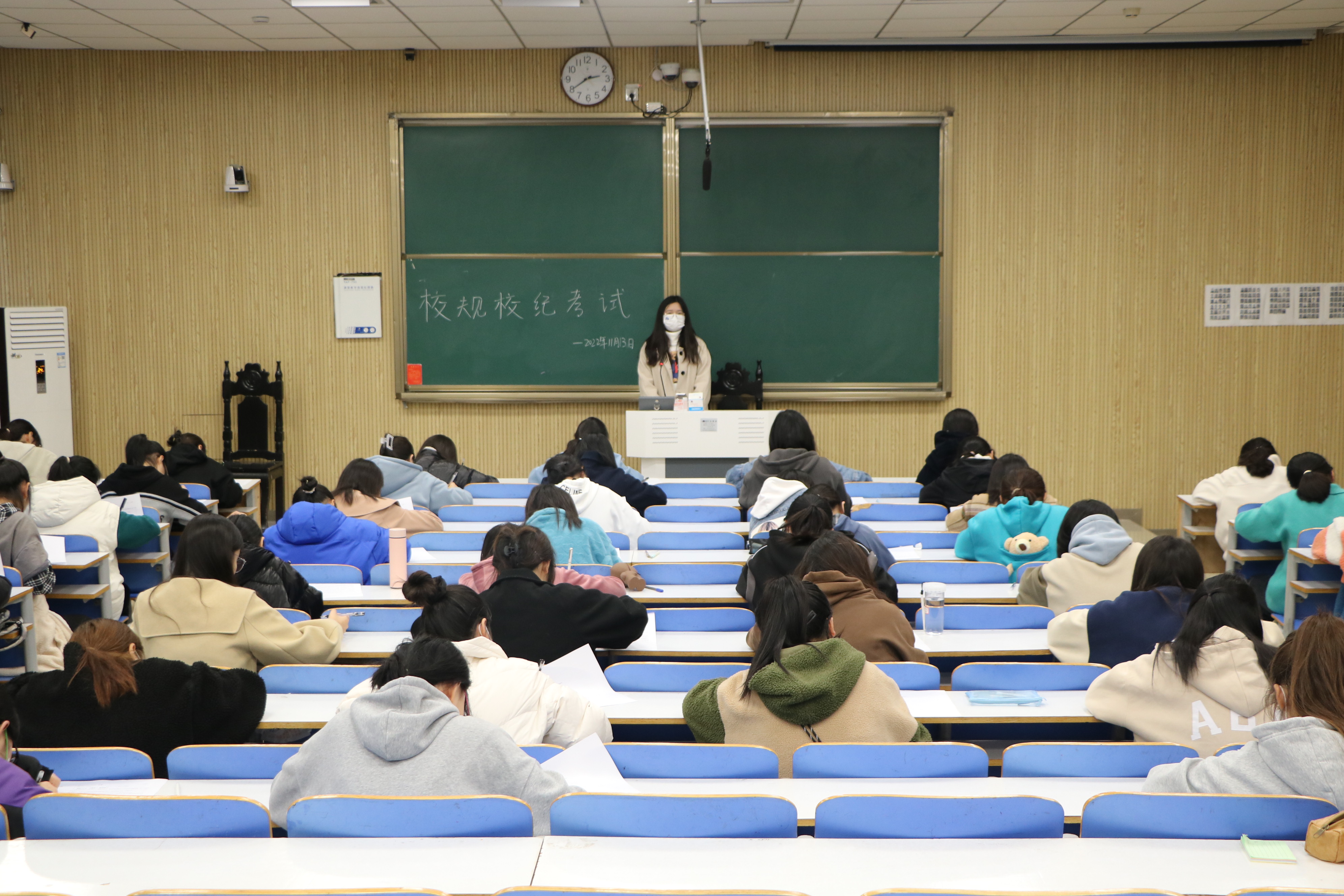 为增强大学生规则意识,构建文明校园,11月13日下午,太阳集团tyc5997在社科楼514、515教室举行2022级新生校规校纪考试。我院2022级新生共同参加此次考试,生活劳卫部负责人樊柯丽、侯珂心担任监考员。