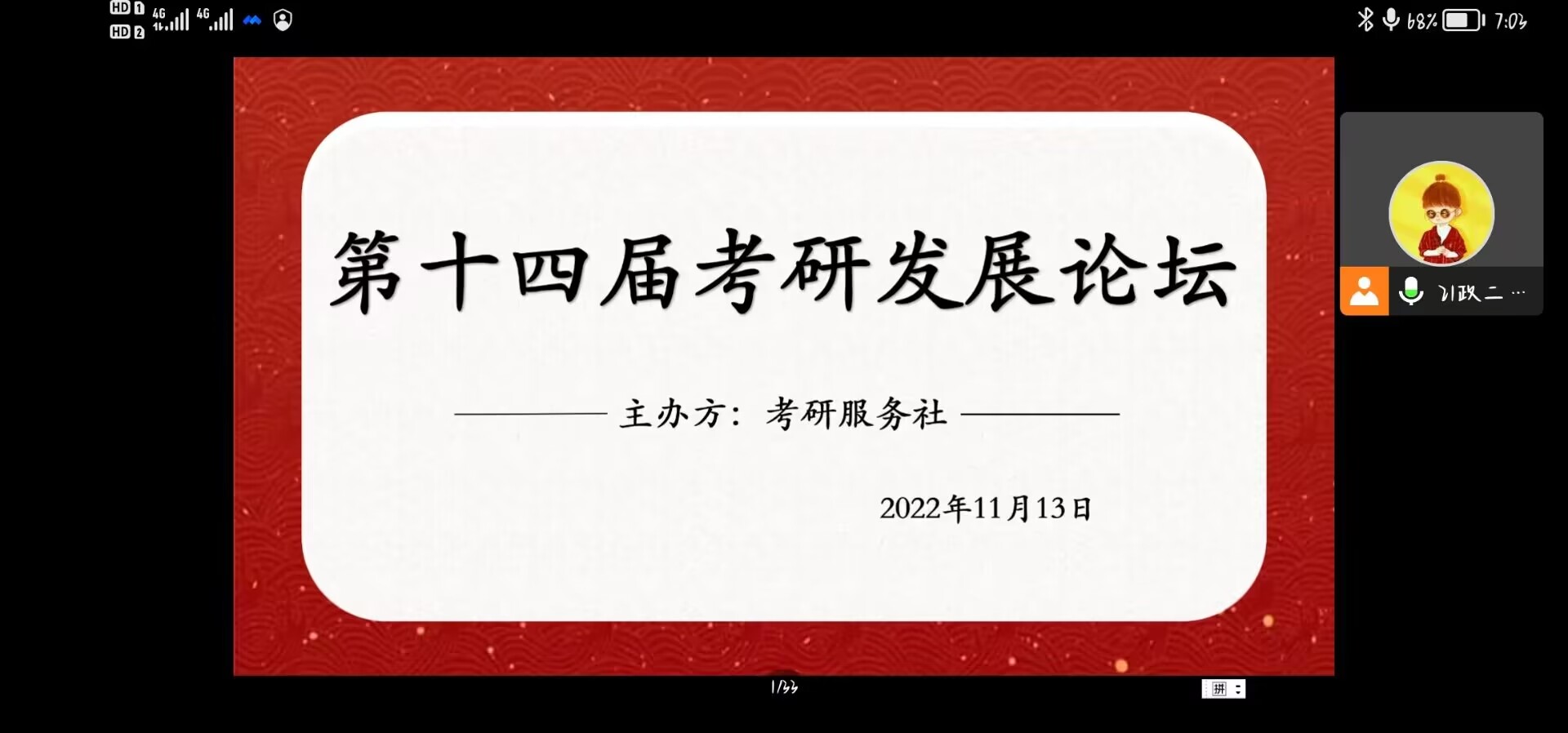 功不唐捐,玉汝于成。11月13日晚上,由太阳集团tyc5997考研服务社组织的第十四届考研发展论坛在线上顺利举行。聚星文登考研指导老师吕明明、校学生会社团部及百名学子共同参加本次论坛。活动由朱钰阁、李雪静主持。