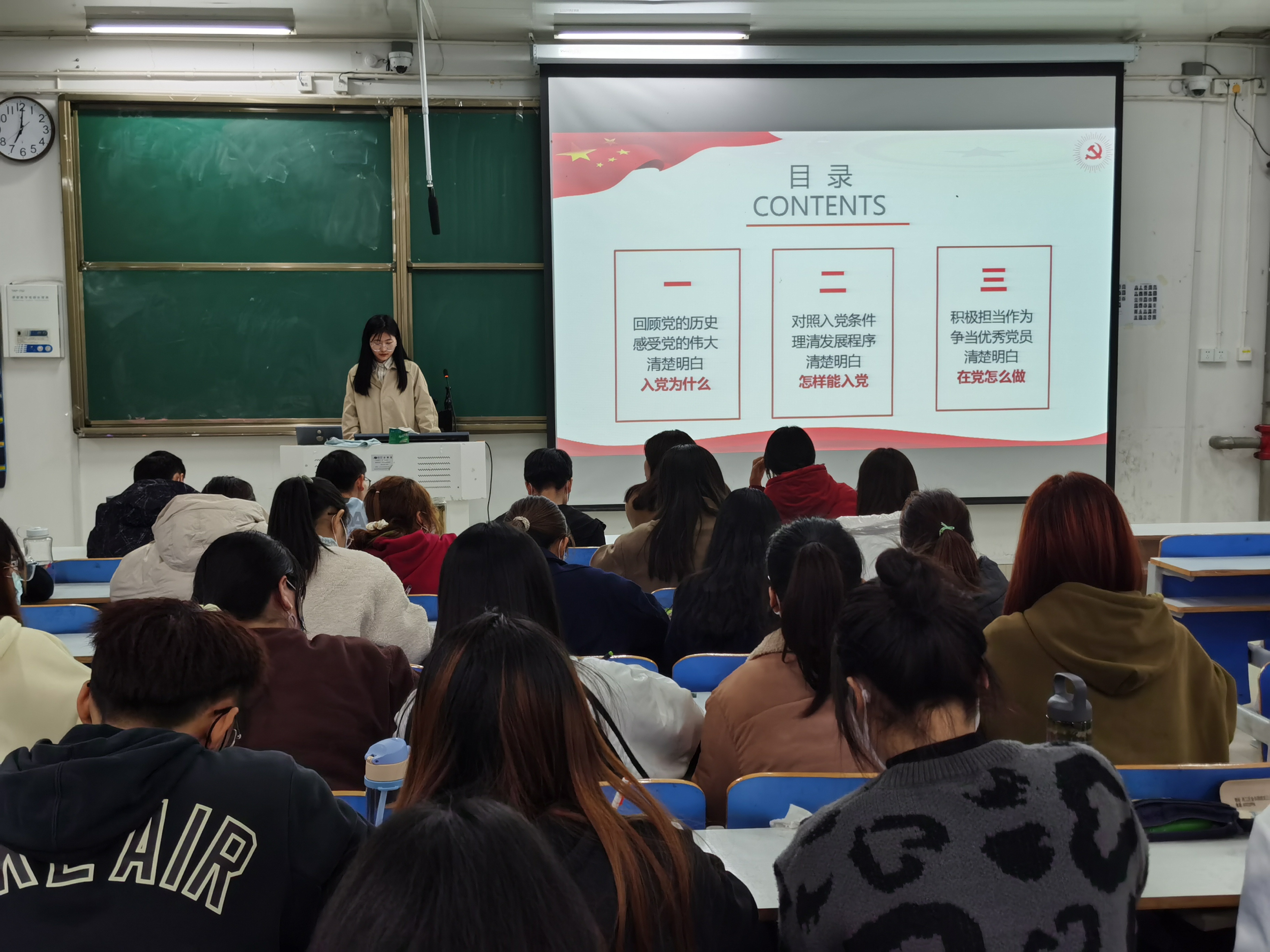 首先,申畅畅以“如何做一名合格的共产党员”为题,从党的百年奋斗史着手,带领青校学员体悟党的精神,感受党的伟大。她指出,发展党员工作是党的基层组织的一项经常性重要工作,是提高党的战斗力的有力措施,要严格遵循“控制总量、优化结构、提高质量、发挥作用”总要求,坚持“双推双评三全程”的原则,依照党员发展程序有序进行。她强调,每位学员应端正入党动机,坚持“讲政治、有信念,讲规矩、有纪律,讲道德、有品行,讲奉献、有作为”的标准,不断在实践中锻炼和提高自身素质。随后,高红凯以“习近平总书记“七一”重要讲话精神解读”为题进行讲述。他表示,各青校学员要全面系统地学习“七一”讲话精神,借助“七一”讲话精神进行党史学习教育,牢记习近平总书记对青年的寄语,担当时代责任、勇于砥砺奋斗、练就过硬本领,积极投身全面建设社会主义现代化国家的伟大事业。