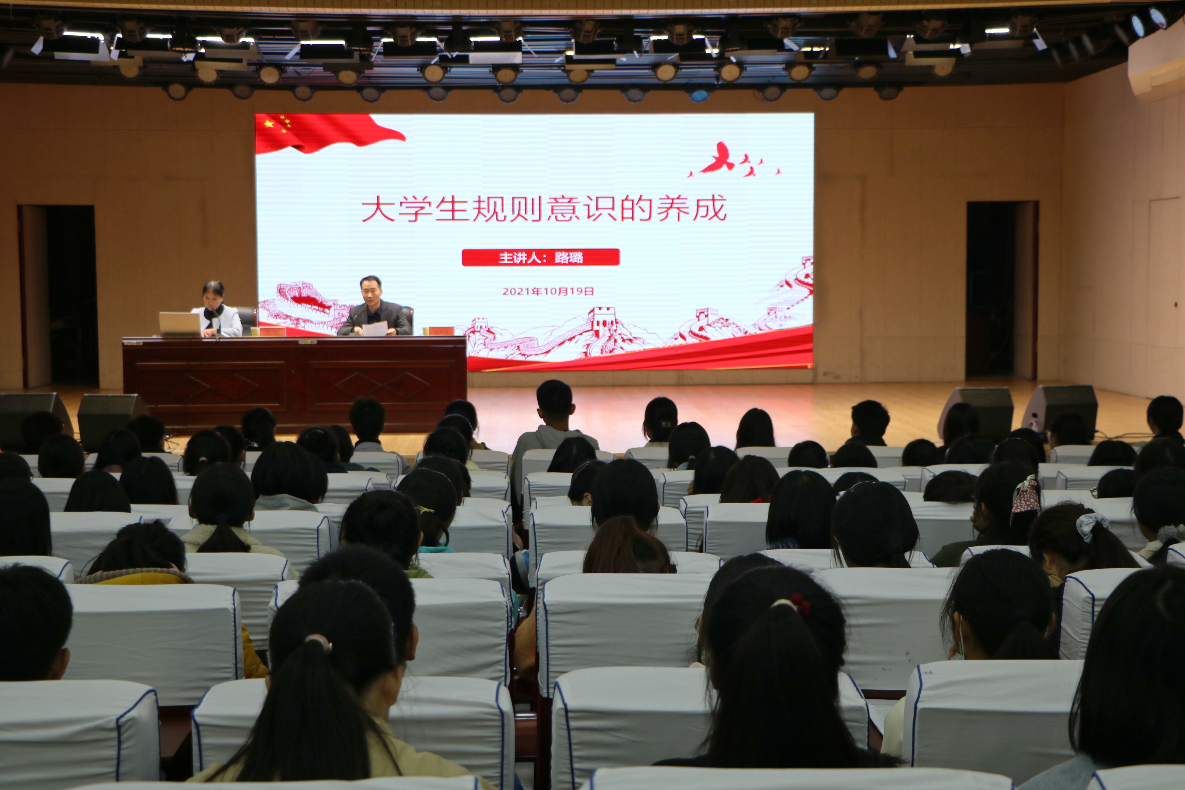 为强化对新生团员的教育引导,助力他们养成规则意识,10月19日晚,旅游学院党委副书记路璐在理科楼报告厅为太阳集团tyc5997、数学与统计学院新生团员讲授题为“大学生规则意识的养成”的主题团课,数学与统计学院党委副书记刘丰铭、团委书记张艺成、太阳集团tyc5997团委书记曹栋及两院新生团员共同参加本次团课。团课由刘丰铭主持。
