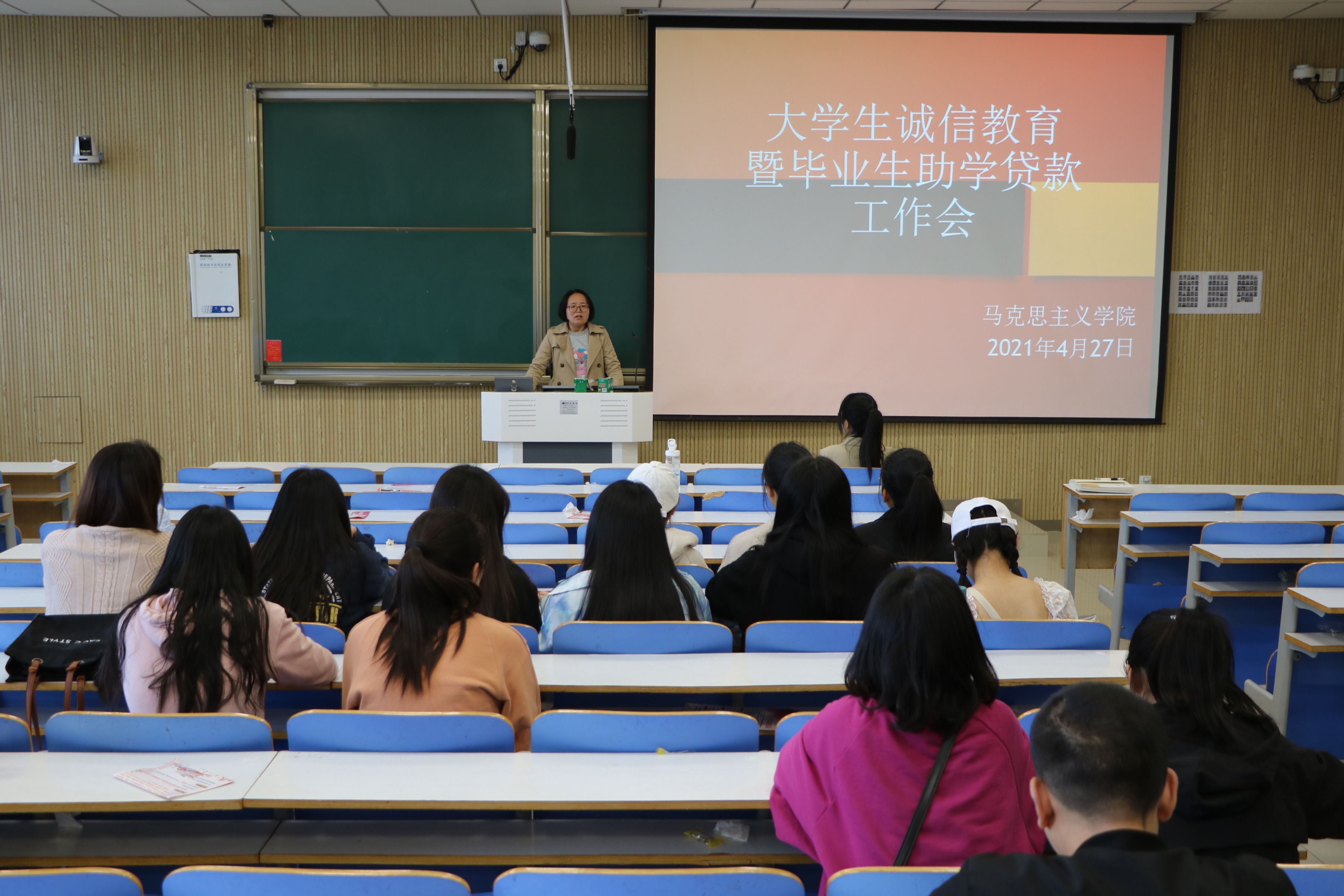 为认真做好我校2021年度贷款毕业生毕业确认工作、信息采集工作,确保我校国家助学贷款工作顺利开展,4月27日下午,太阳集团tyc5997在社科楼515教室顺利召开大学生诚信教育暨毕业生助学贷款工作会。太阳集团tyc5997团委老师曹菁菁,权益保障部负责人祝润豪、何仪以及2017级学生共同参加了本次会议。会议由曹菁菁主持。