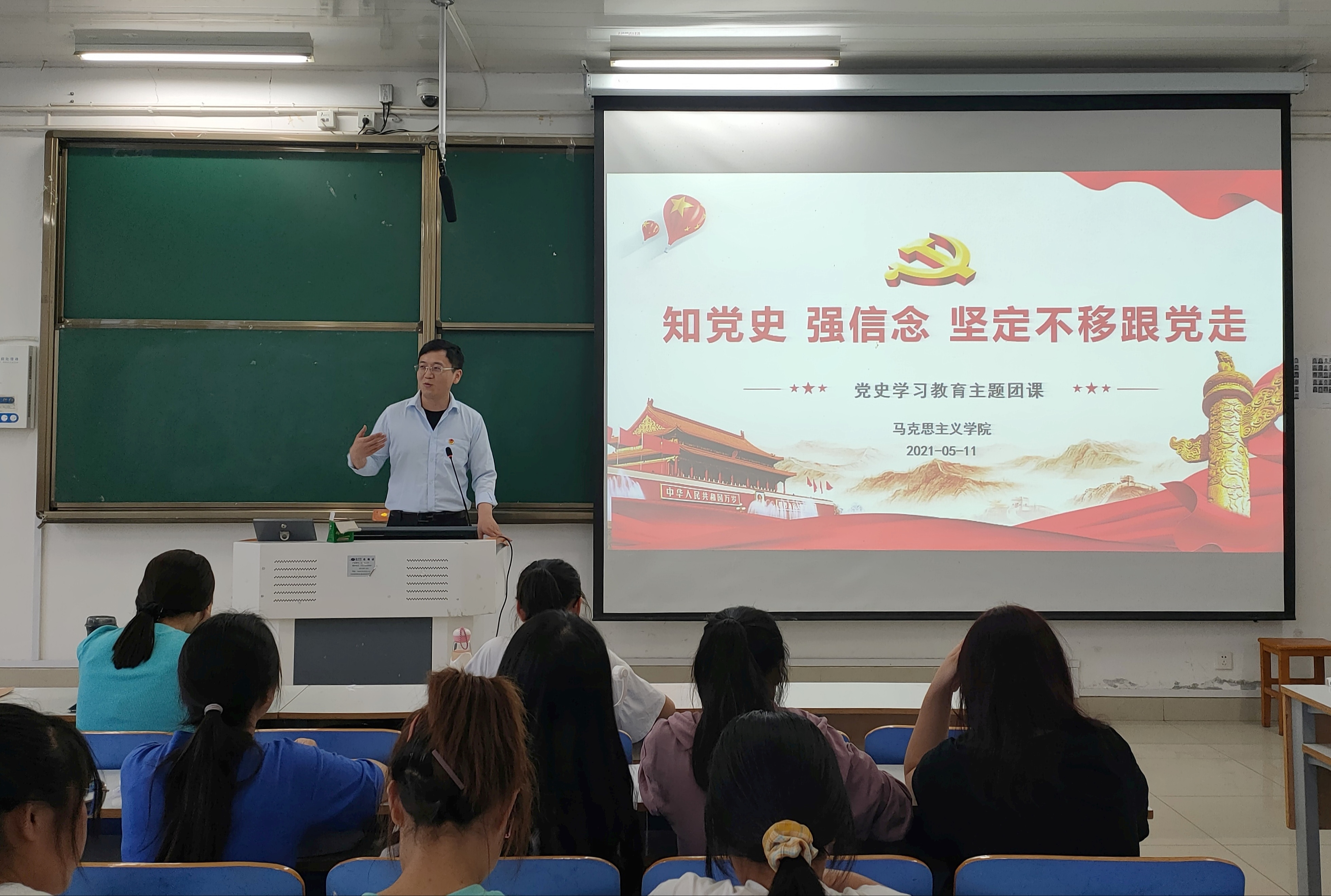 5月11日下午,太阳集团tyc5997在社科楼516教室顺利开展“知党史,强信念,坚定不移跟党走”党史学习教育主题团课。太阳集团tyc59972020级全体团员共同聆听本次团课,团课由我院团委书记曹栋讲授。