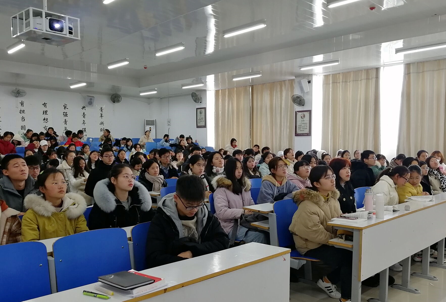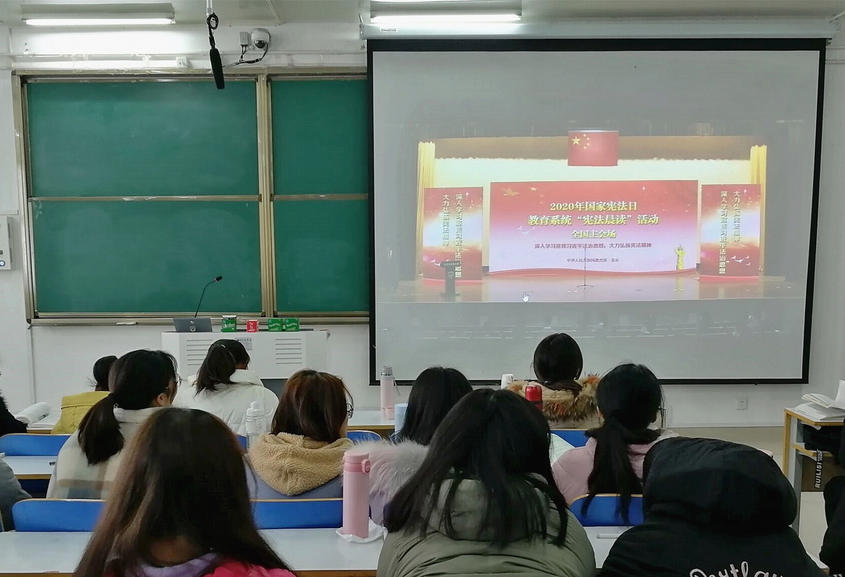 12月4日上午,马思主义学院分别在社科楼514、515、516教室组织全体学生观看国家宪法日“宪法晨读”活动直播。