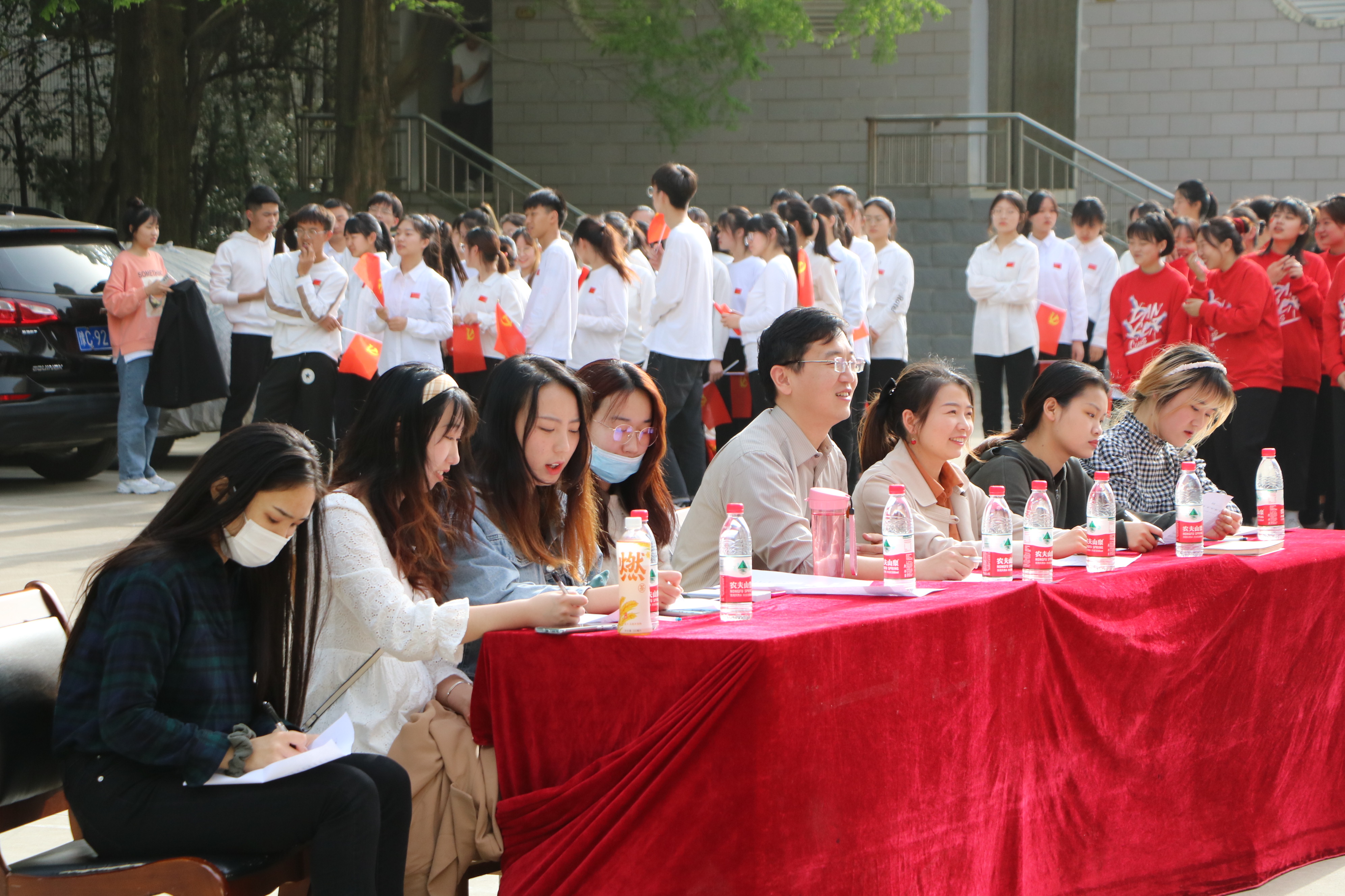 4月16日下午,太阳集团tyc5997在教八楼前举办“红歌颂党恩”合唱比赛。我院团委书记曹栋、团委老师陶青青以及学生会主席团代表成员担任比赛评委,2019、2020级全体学生共同参加本次比赛。比赛由学生会副主席袁祖顺主持。