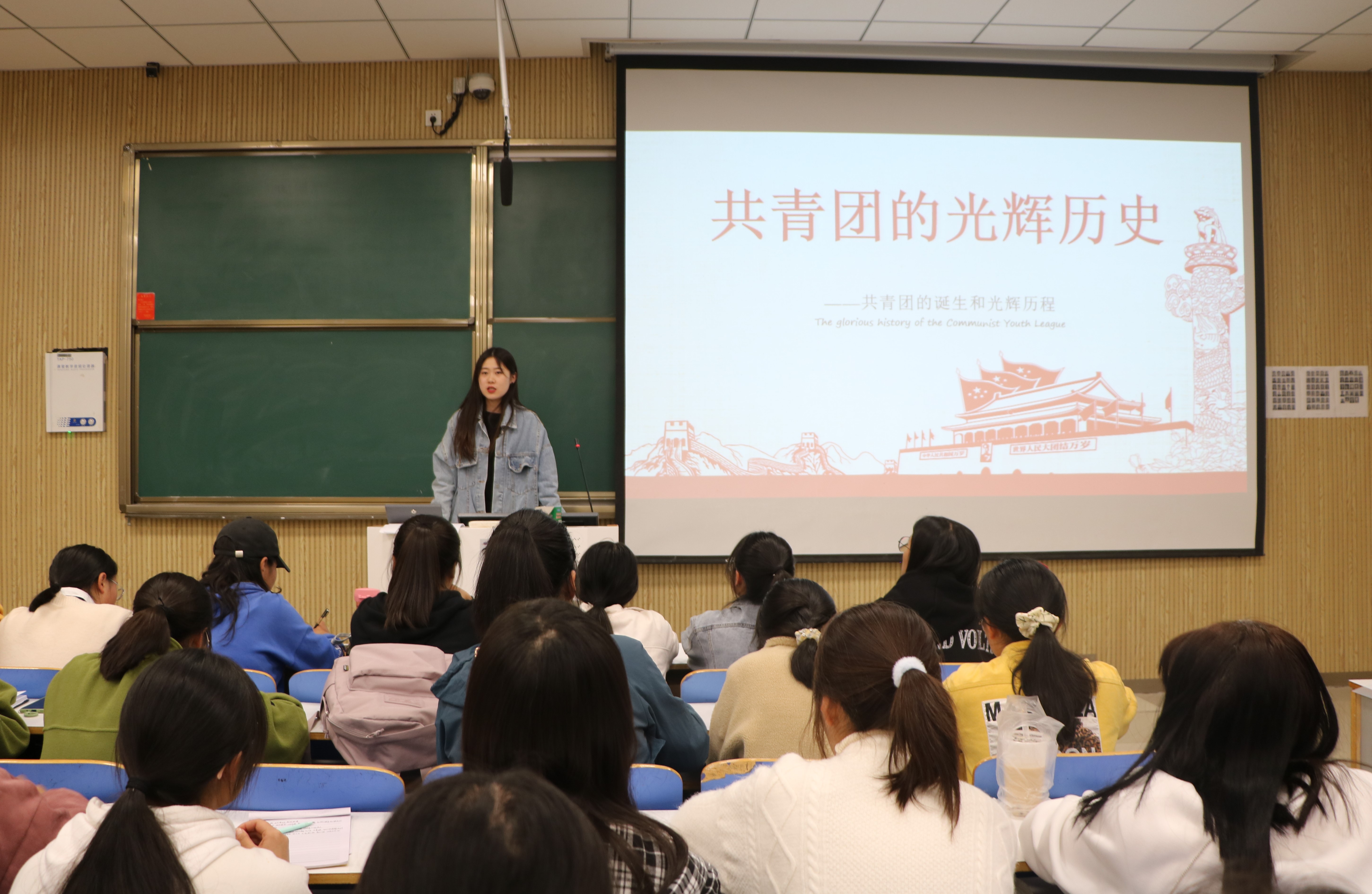 本次团课以班级讨论的形式进行。首先,团课以一段生动有趣的视频为开头,展现了三个不同历史时期共青团员为祖国视死如归,挥洒汗水,无畏逆行的光辉形象,让同学们更加了解共青团的历史及优良传统。视频结束后,2020级各班团支书依次分享观后感想,他们表示,共青团员应积极顺应时代潮流,始终保持正确性和先进性,在实现中国梦的伟大征程中而不懈奋斗。随后,2019级团干代表依次上台讲述自己对共青团的认识和理解,分享了学习经验。她们指出,同学们要积极参加团日活动,肩负团员责任,履行团员义务,积极学习理论知识,提升思想高度。最后,姜雨杭通过PPT展示,向同学们介绍了共青团的基本理论知识,重点讲述了共青团的重大历史事件与光荣传统。