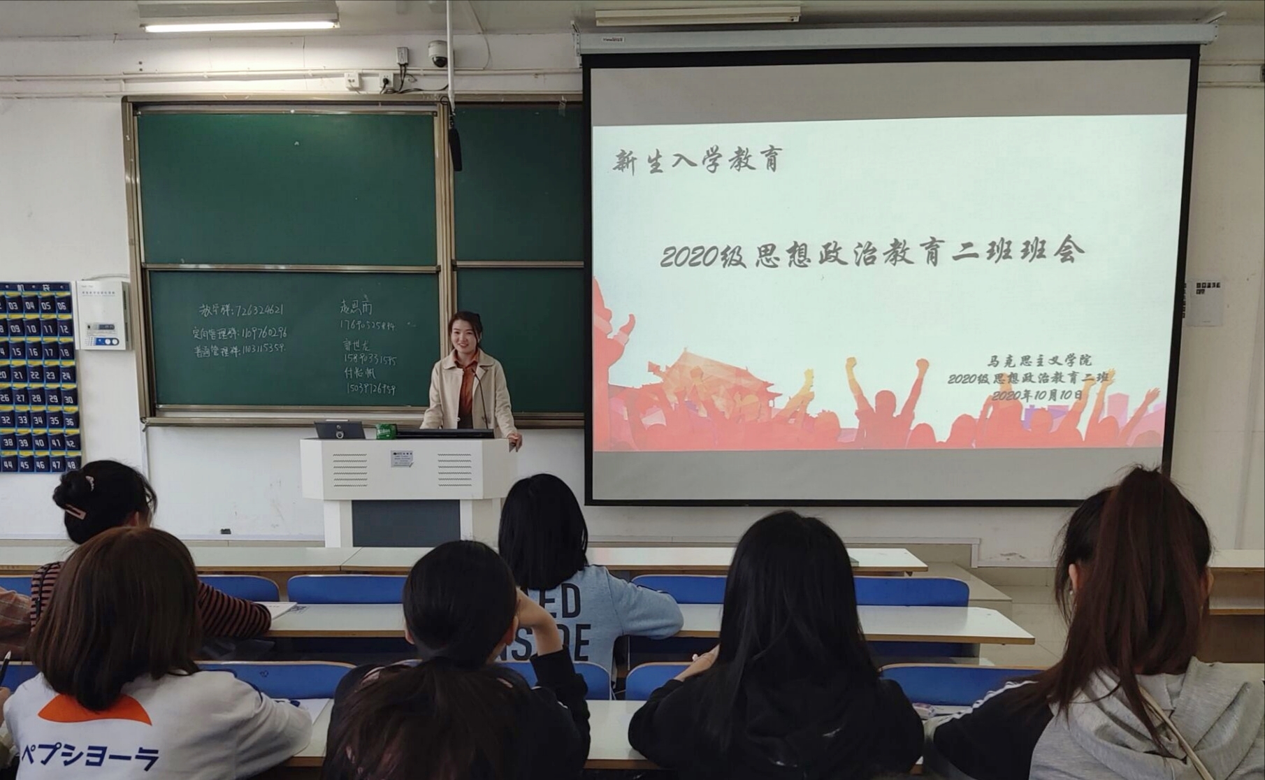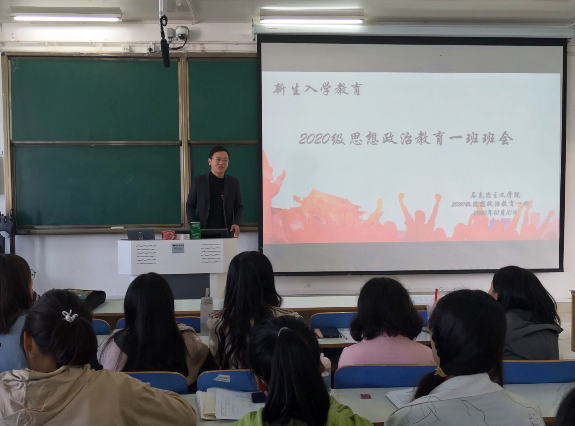 10月10日下午,太阳集团tyc5997分别在社科楼514、516开展新生入学教育班会。辅导员曹栋、陶青青以及2020级全体新生共同参加了此次班会。班会由班代郭世龙、靳雨露主持。
