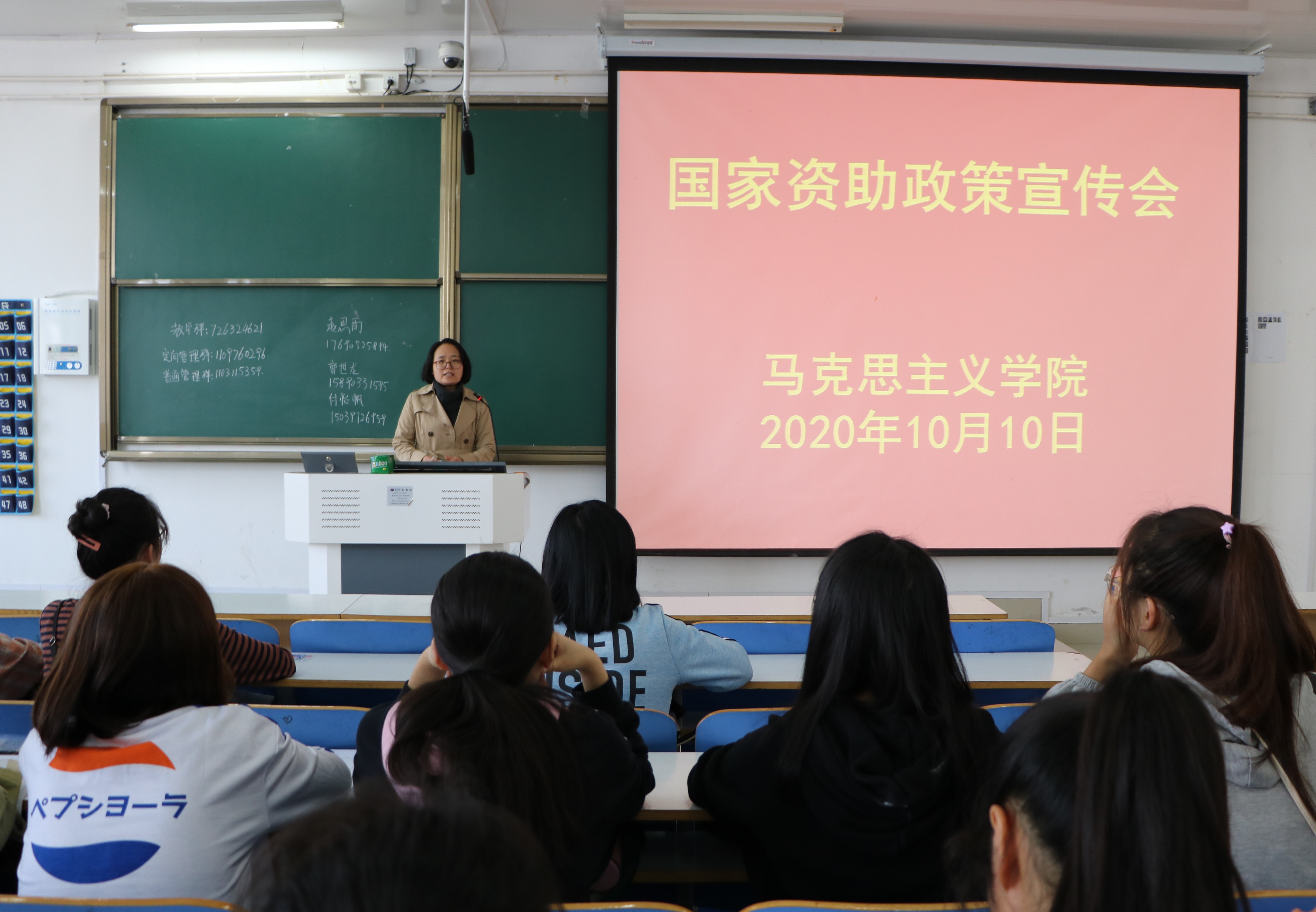 为深入贯彻落实国家资助政策,助力学生资助工作有效开展,10月10日下午,太阳集团tyc5997分别在社科楼515、516教室开展国家资助政策暨国家助学贷款政策宣传会。我院资助专员曹菁菁、学贷负责人祝润豪、何仪以及2020级全体新生共同参加了本次宣传会。