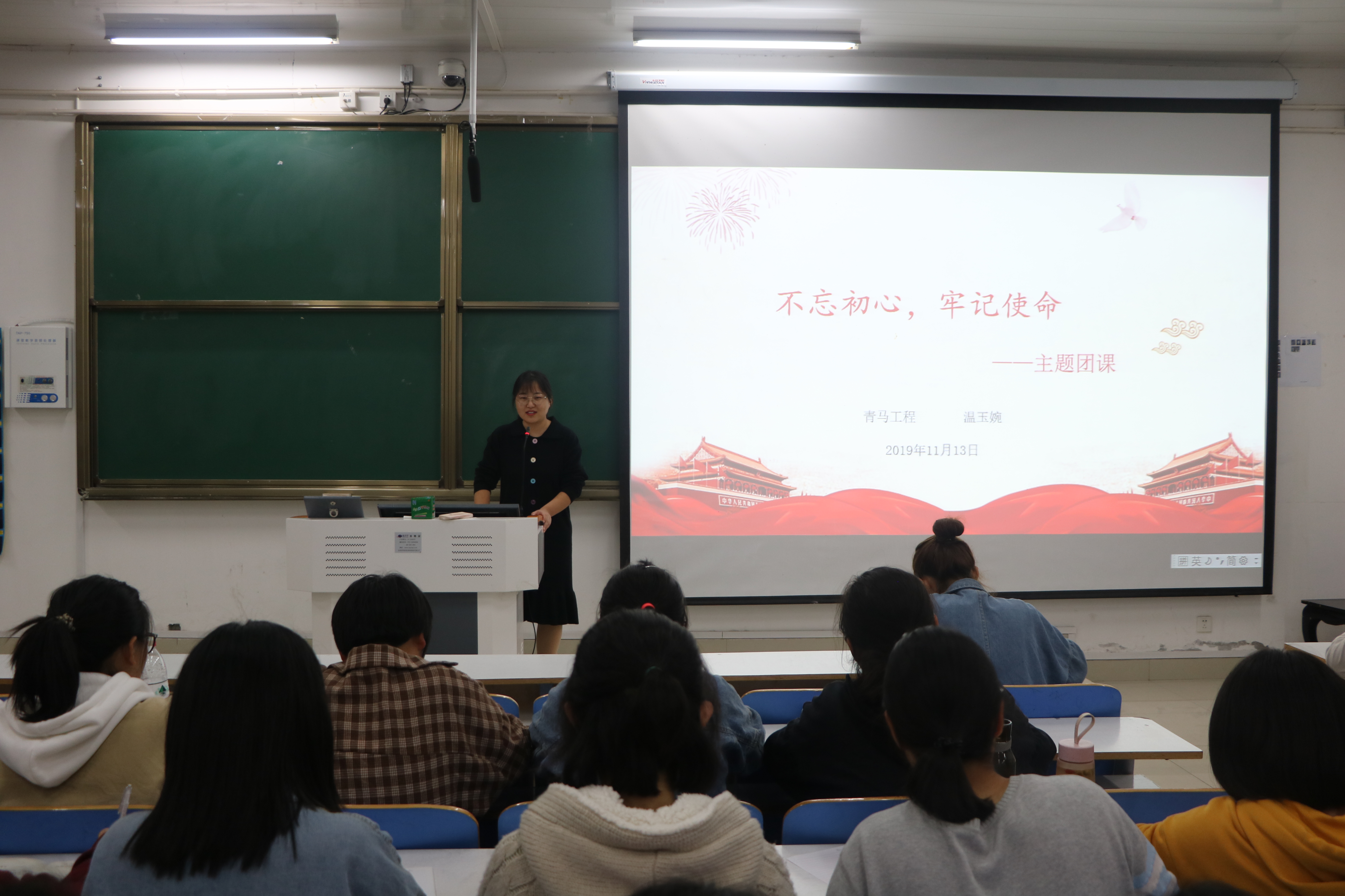 11月13日晚,太阳集团tyc5997“青马”工程学员在社科楼516教室为我院新生团员讲授团课,团委副书记肖妍杰、学生会副主席王雅纯及2019级全体团员共同聆听了本次团课。团课由“青马”工程学员代表温玉婉、黄子晋讲解。