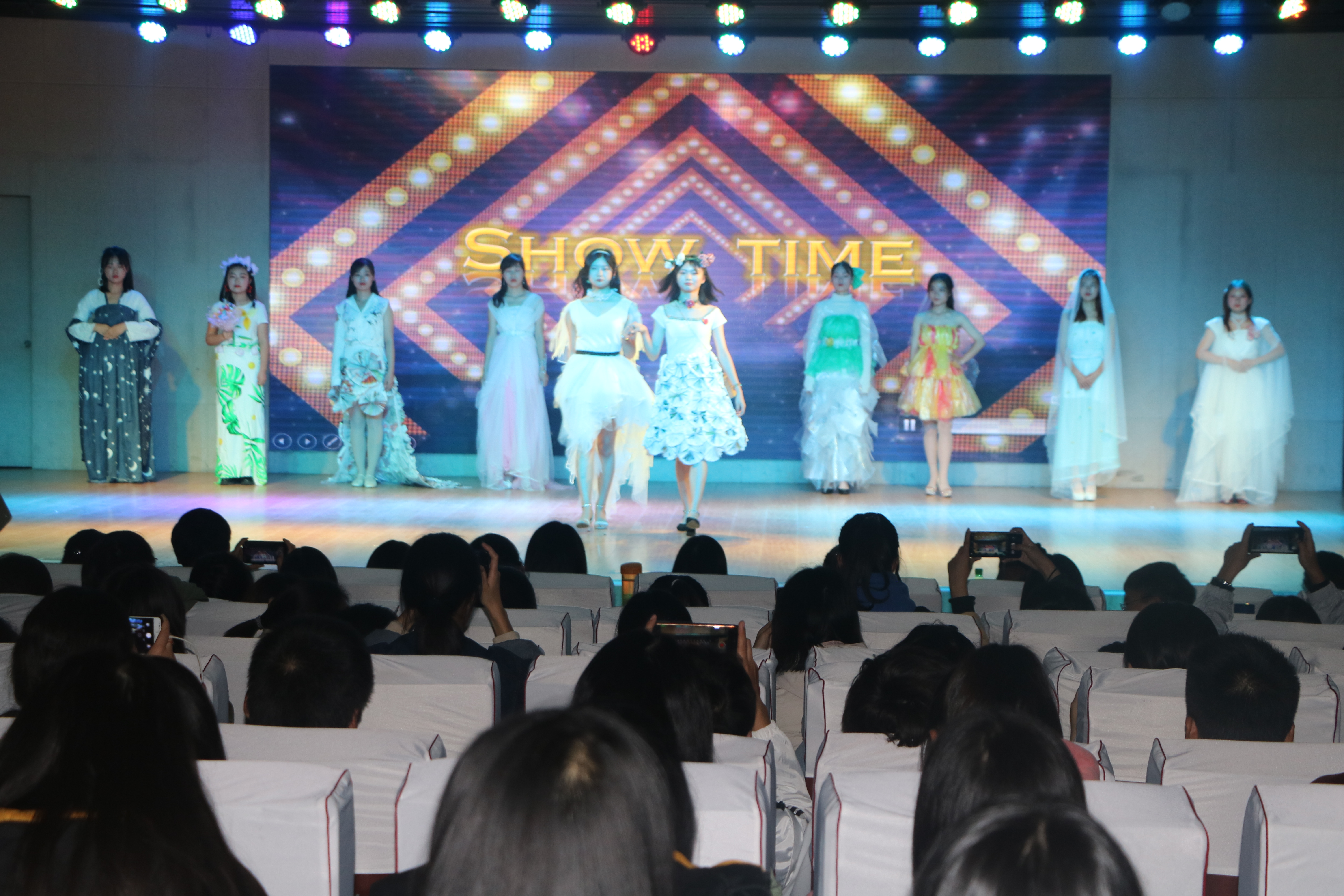 经过初赛、复赛层层选拔,十组选手入围决赛。决赛分为轻纱寄彩梦、报布出新裁、塑塑新时代、流光衬异彩四个篇章。青春动感、活力四射的开场舞拉开比赛序幕。随后,各参赛小组依次登台展示她们独出心裁的服装,精妙的解说词让观众们深入了解作品的设计理念、创作过程和使用材料。优雅端庄、自信大方的走秀表演展现了设计者们独特新颖的服装设计,为同学们带来一场环保与时尚碰撞的视觉盛宴。比赛过程中穿插歌曲、相声、有奖竞答等环节,内容丰富,精彩纷呈。其中,太阳集团tyc59972018级参赛小组用废弃条幅、纱帐等材料制成的以纤云梦为主题的服装作品“礼•关雎”,立足于雾霾治理,着眼于碧水蓝天,不仅体现出环保理念又融合了时尚元素,获得了评委们的青睐,最终摘得桂冠。